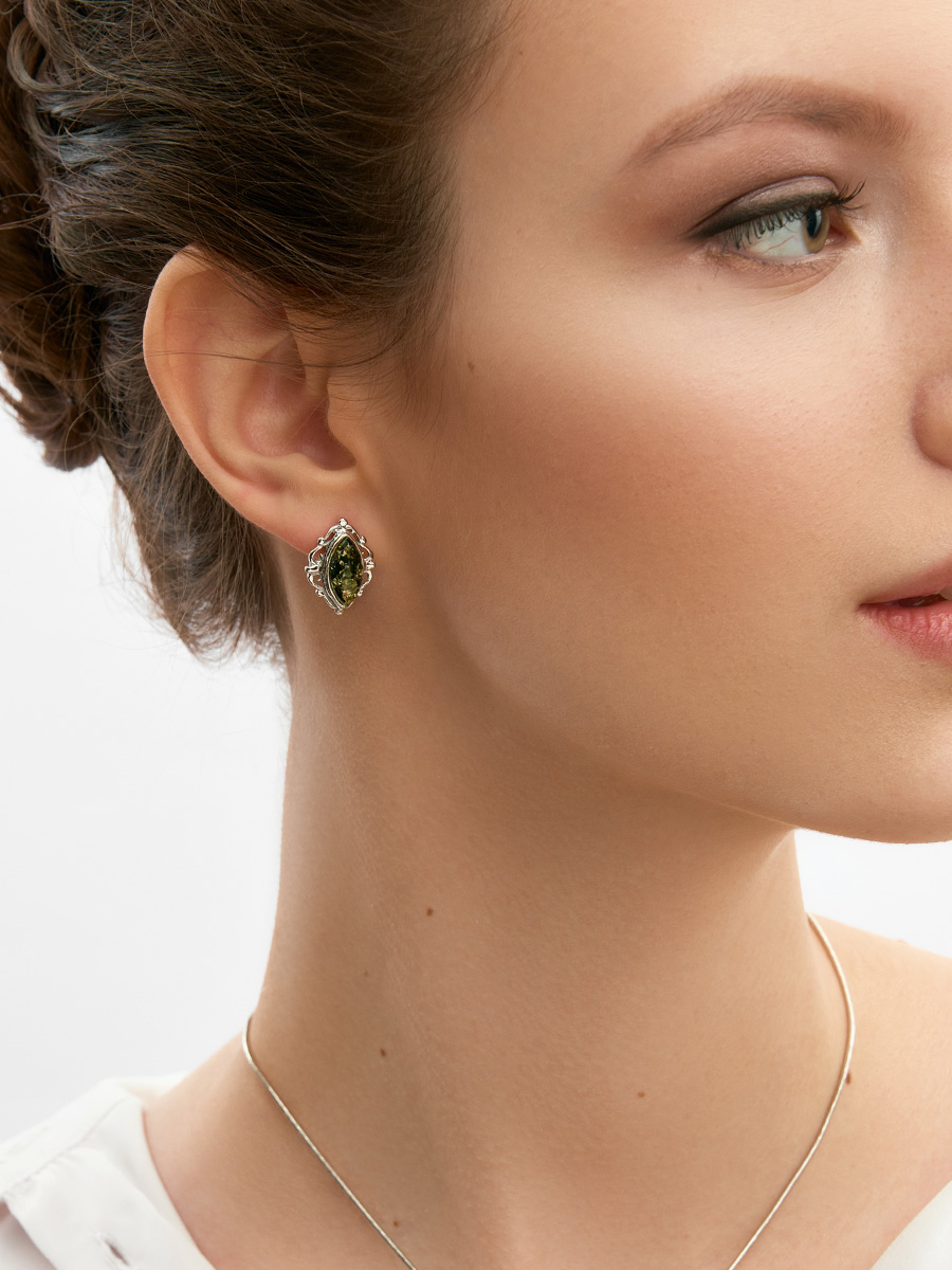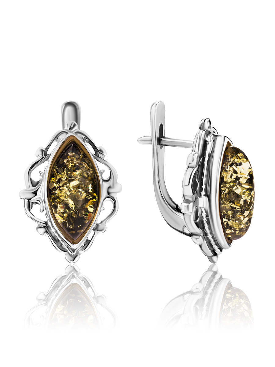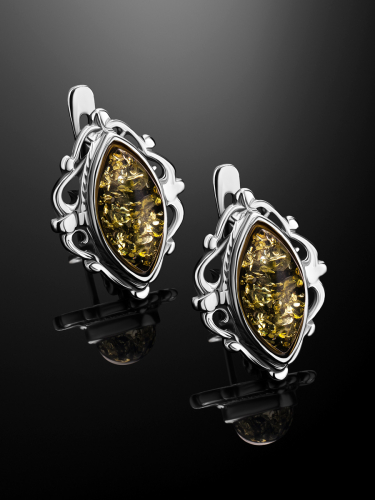 Небольшие изящные серьги из зелёного янтаря «Годива»