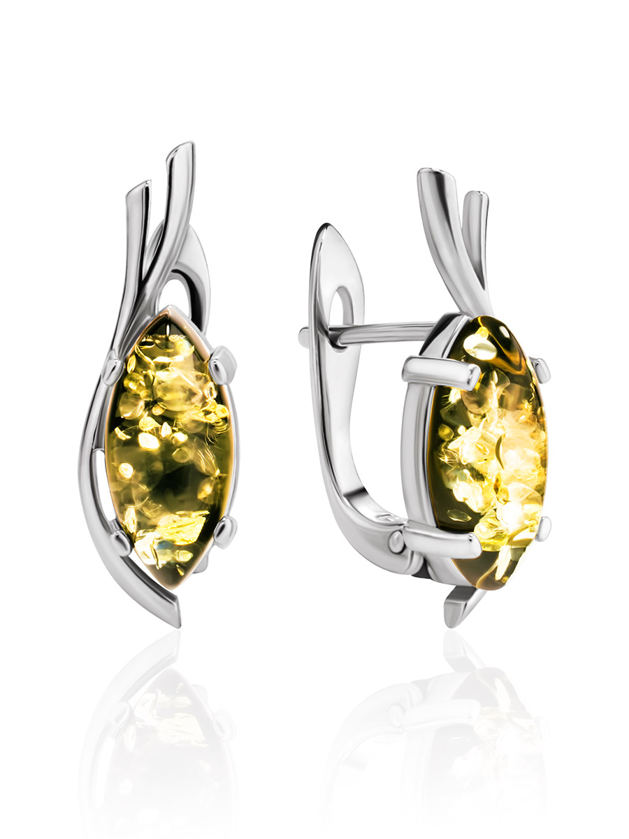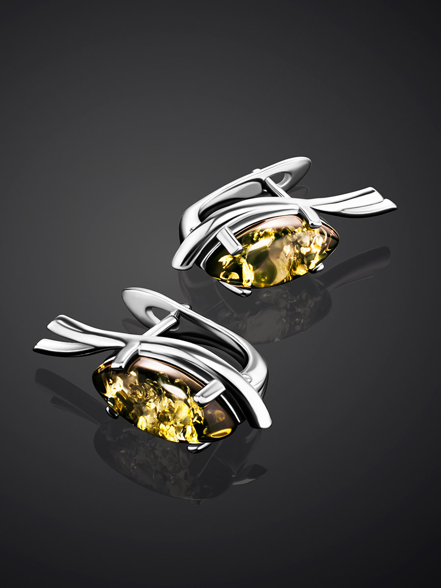 Небольшие изящные серьги с искрящимся зеленым янтарем «Ирис»