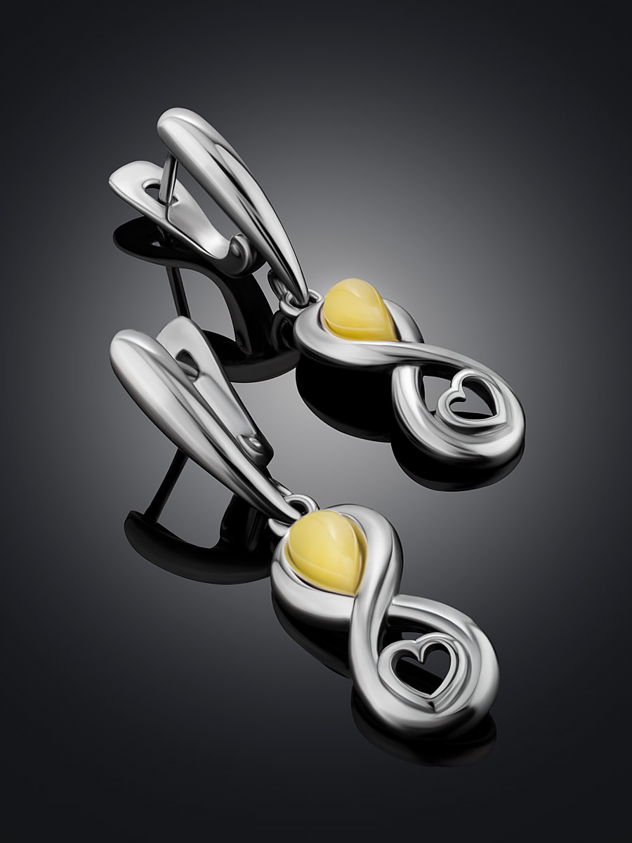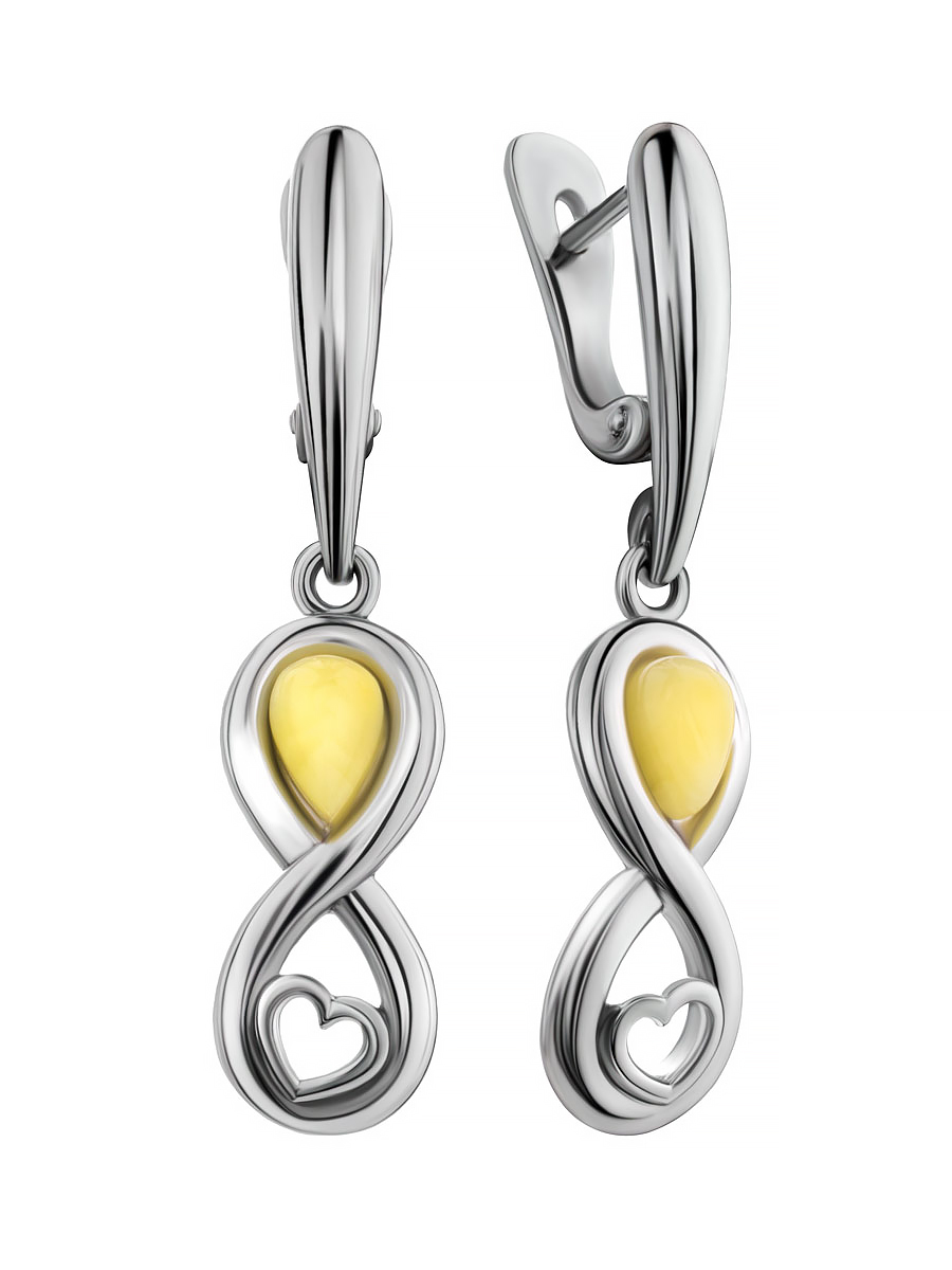 Небольшие изящные серьги со вставкой из медового янтаря «Амур»