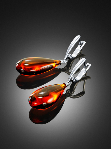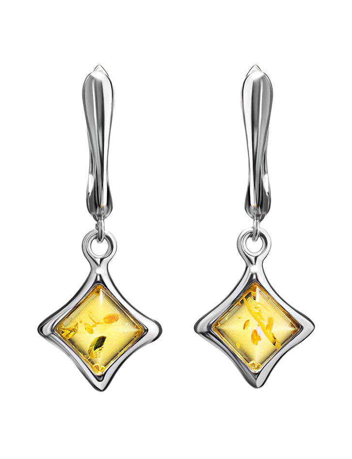 Небольшие изящные серьги «Вега» с натуральным балтийским янтарём лимонного цвета