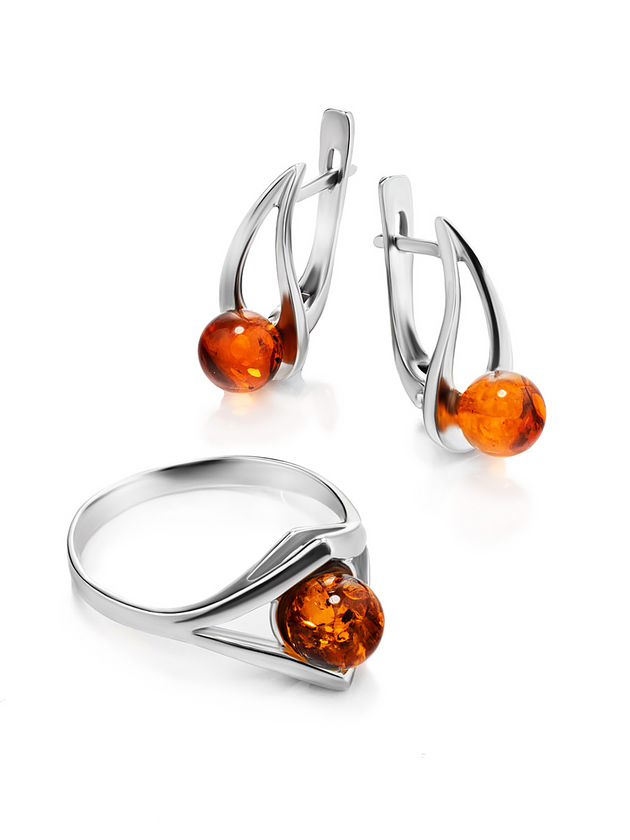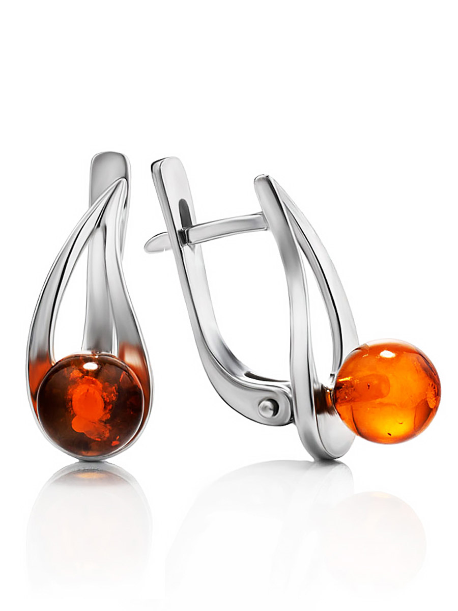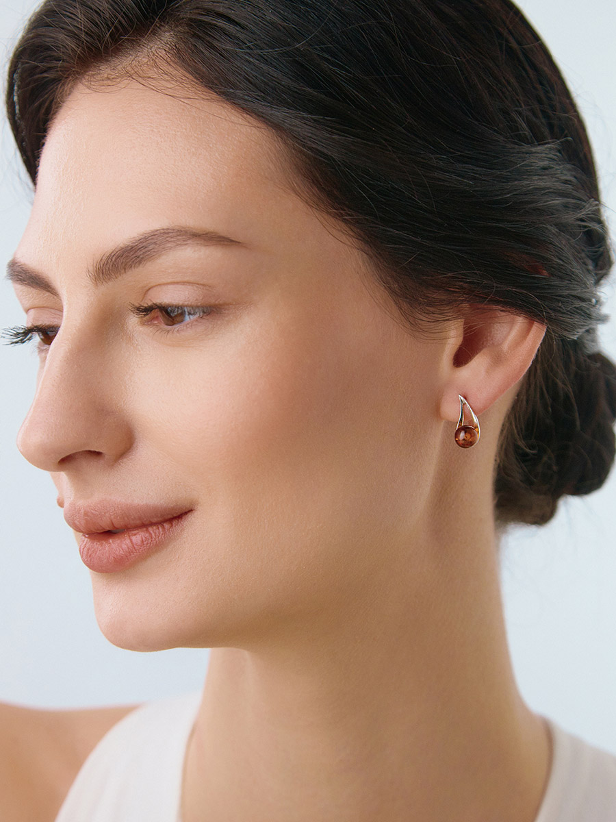Небольшие оригинальные серьги с коньячным янтарём «Альдебаран»