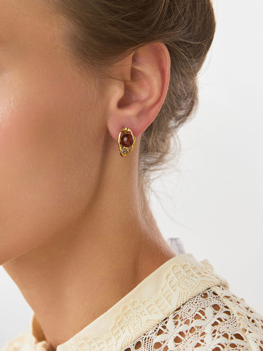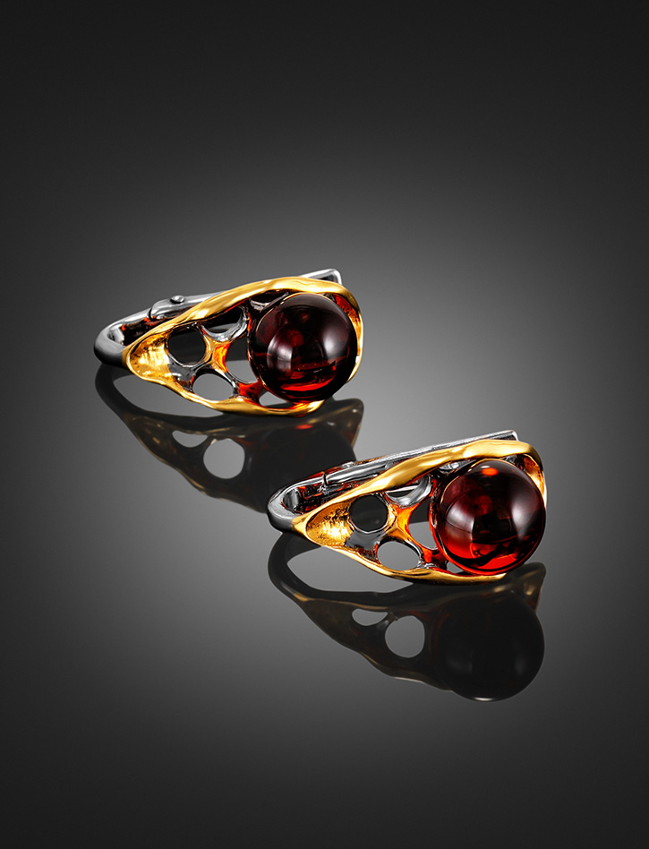 Небольшие оригинальные серьги «Турандот» с янтарём коньячного цвета