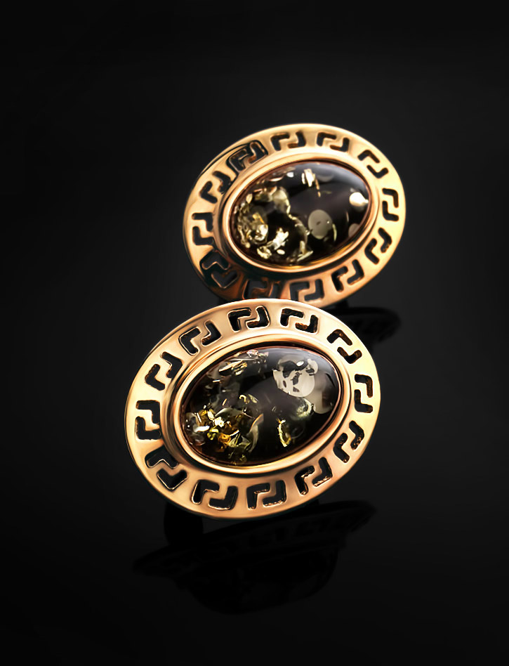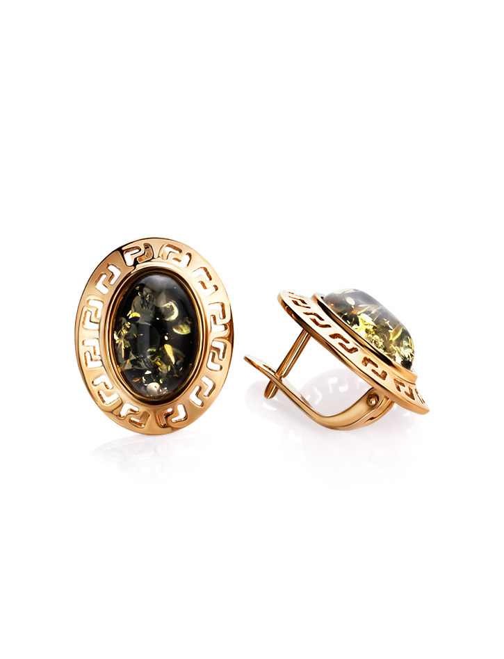 Небольшие серьги из зелёного янтаря «Эллада»