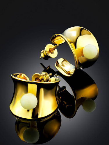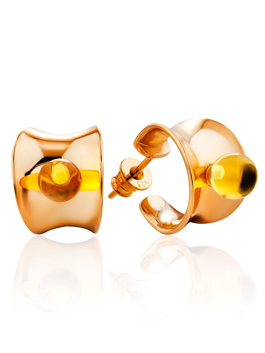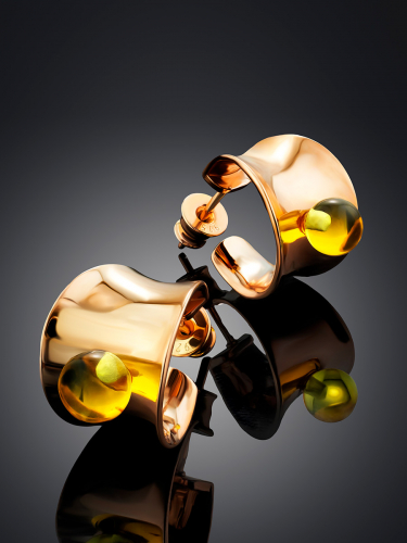 Небольшие серьги-кольца с лимонным янтарём Palazzo от ifamore™