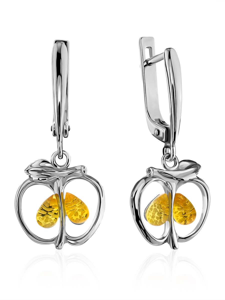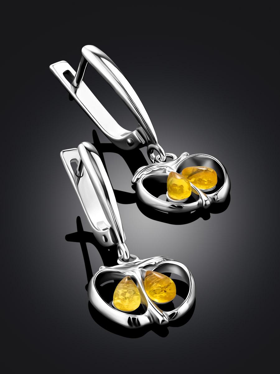 Небольшие серьги «Конфитюр» с натуральным янтарём лимонного цвета