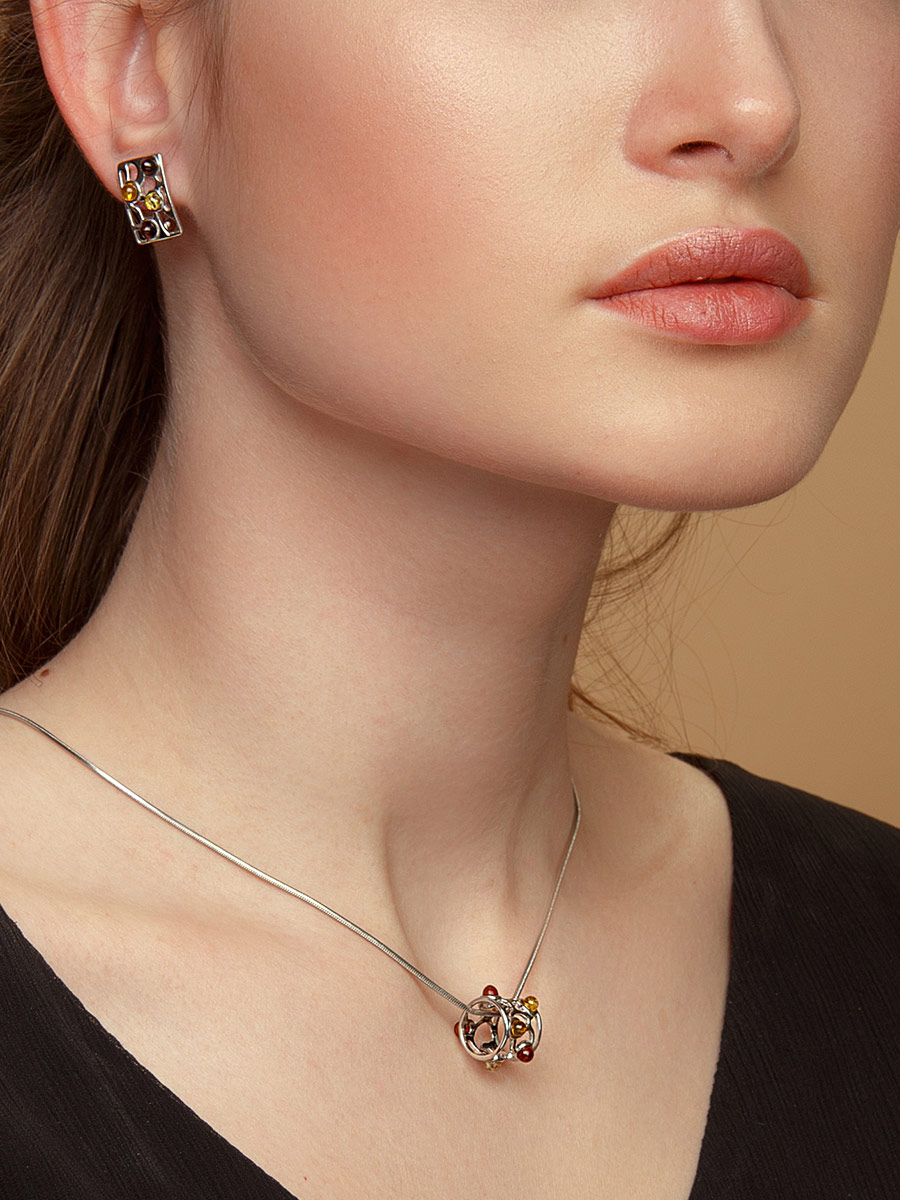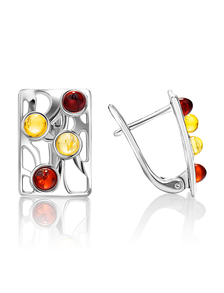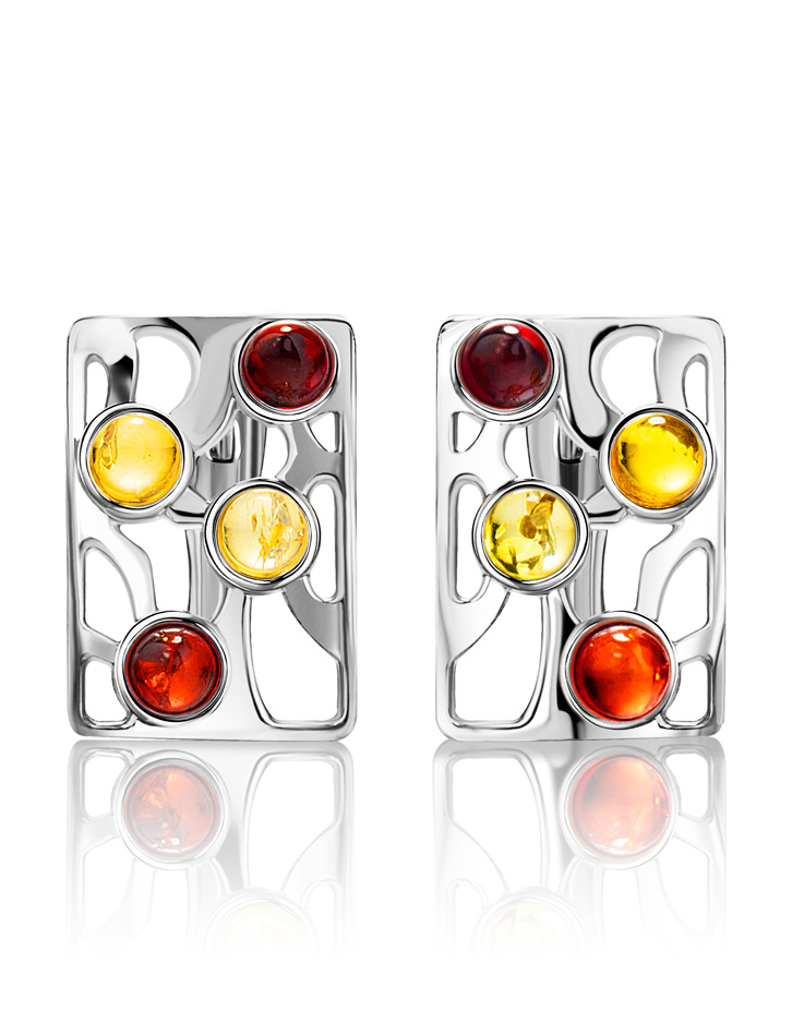 Небольшие серьги «Лимбо» с натуральным янтарём разных цветов