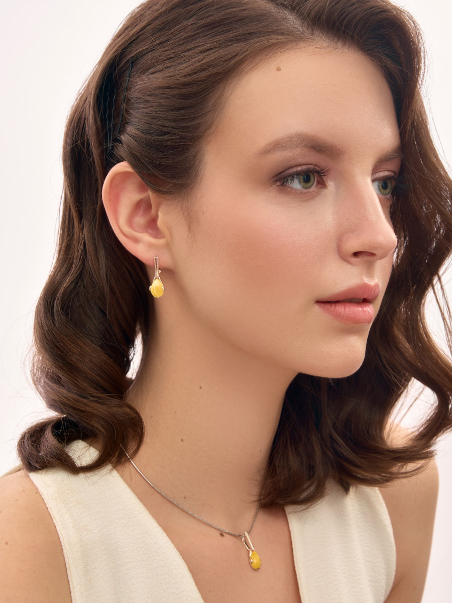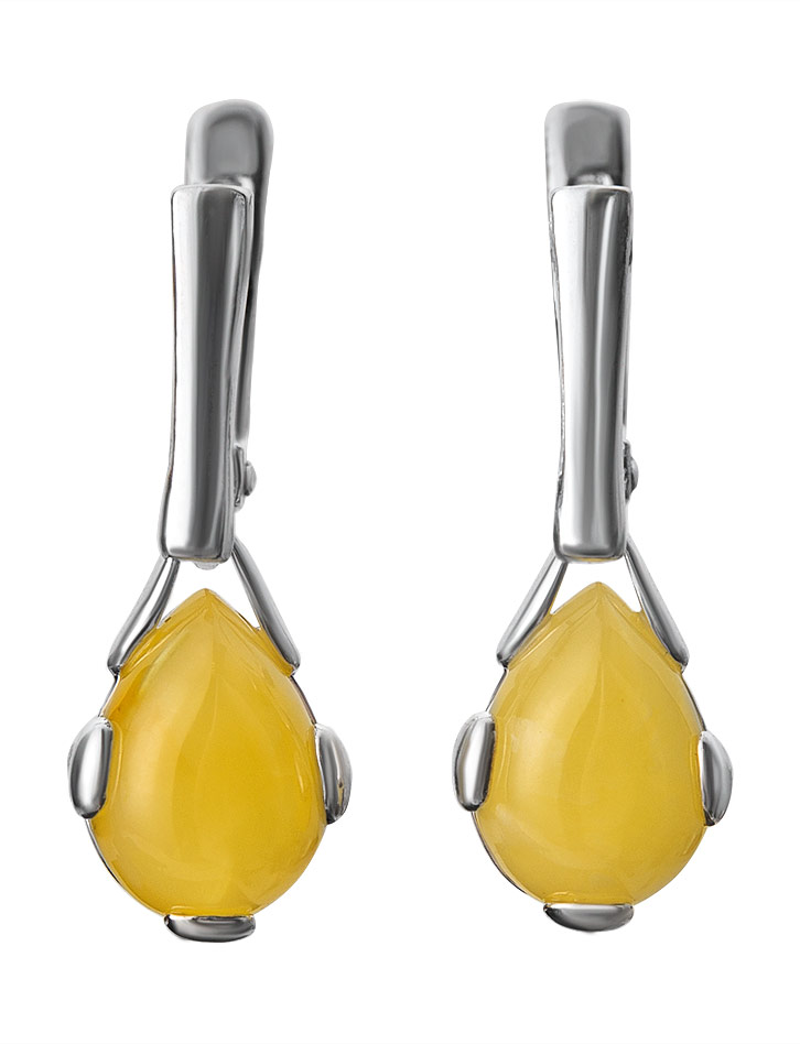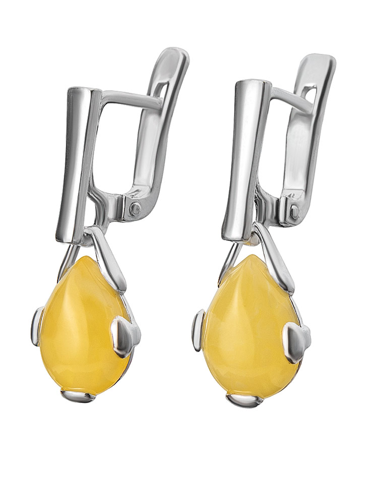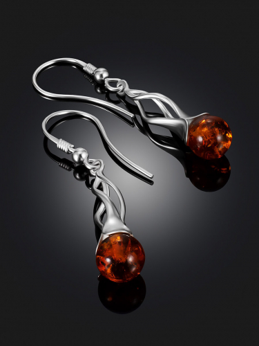 Небольшие серьги с натуральным медовым янтарём «Огонёк»