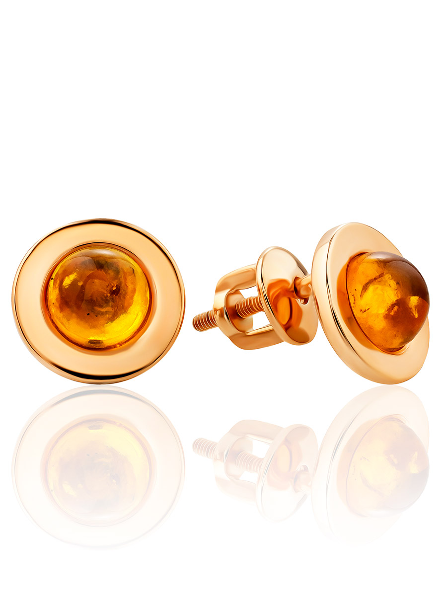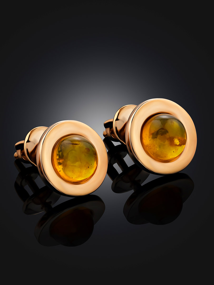 Небольшие яркие серьги-гвоздики с янтарём «Кнопочка»