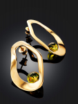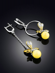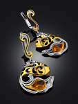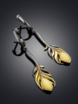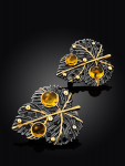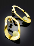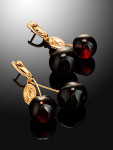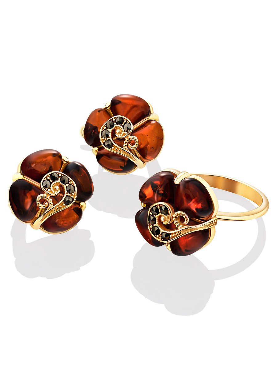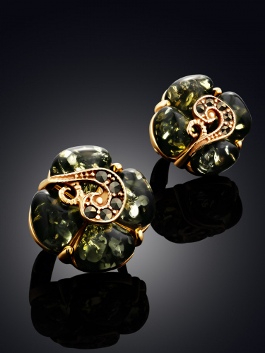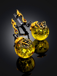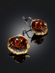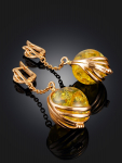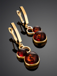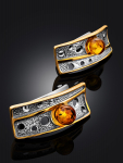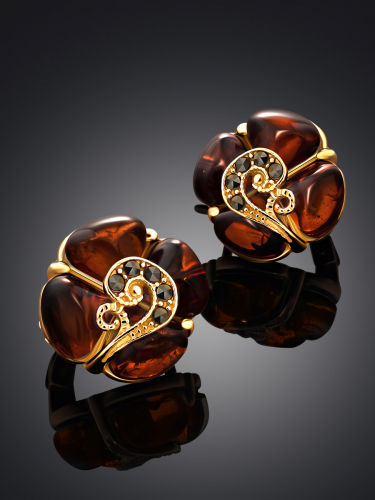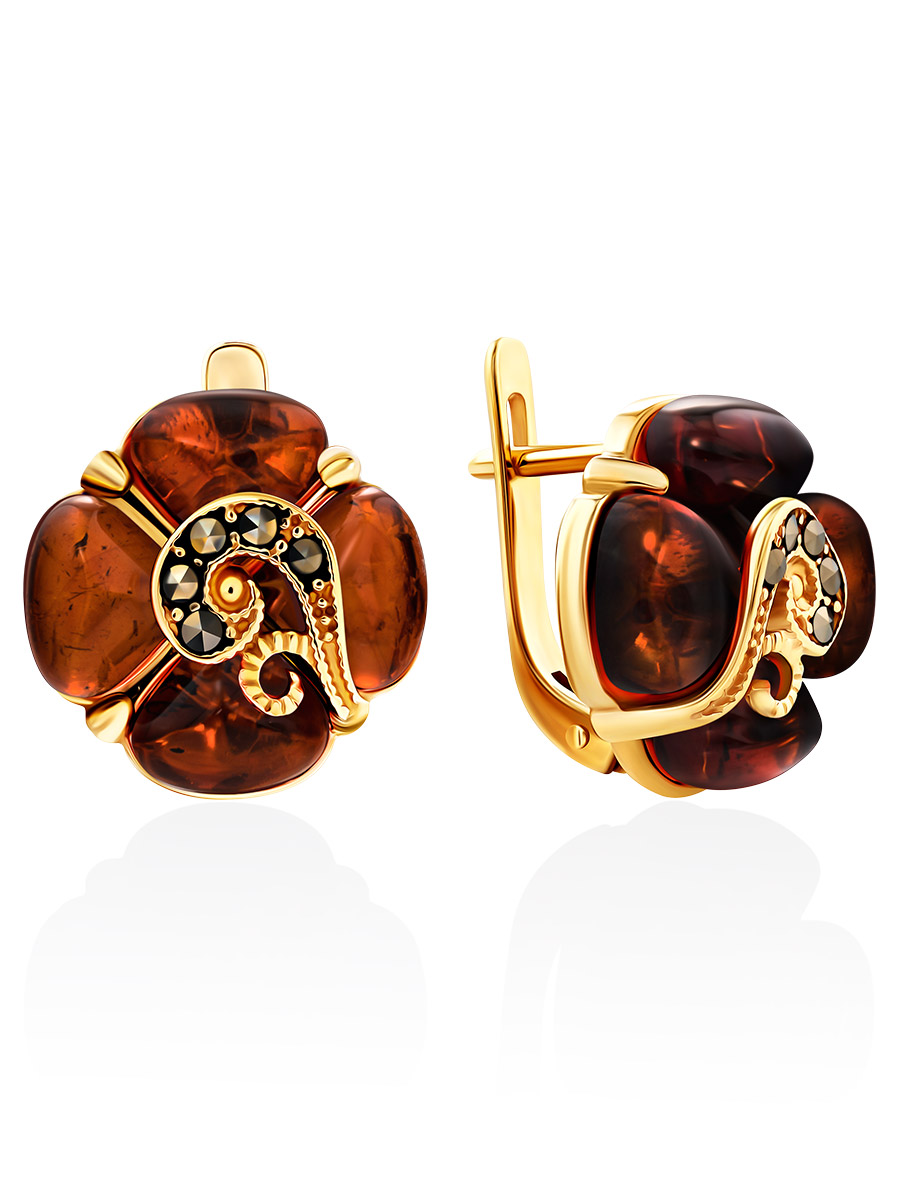 Небольшие яркие серьги из коньячного янтаря в позолоченной оправе с марказитами «Лола»