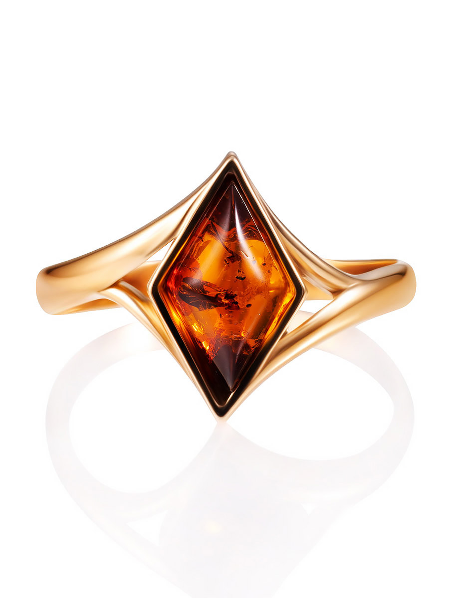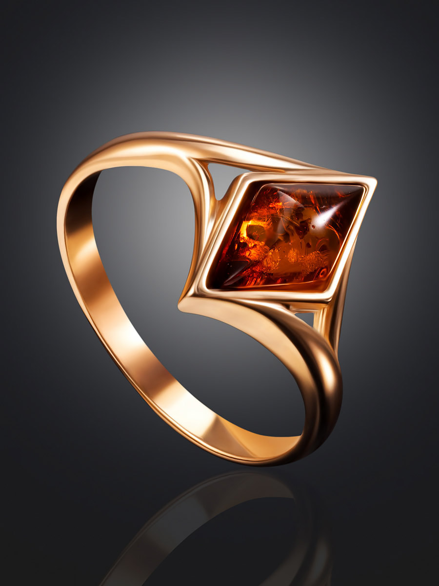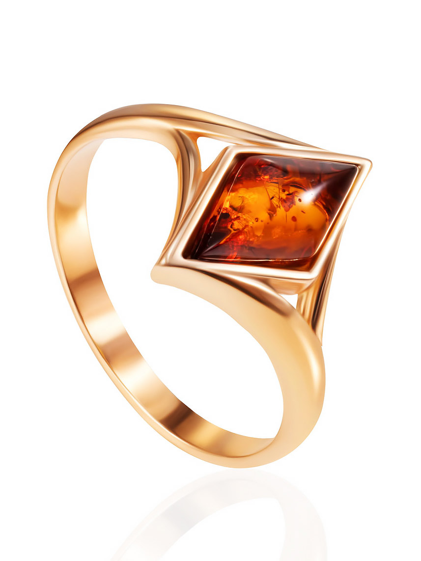 Небольшое кольцо из золоченного серебра и коньячного янтаря «Коломбина»