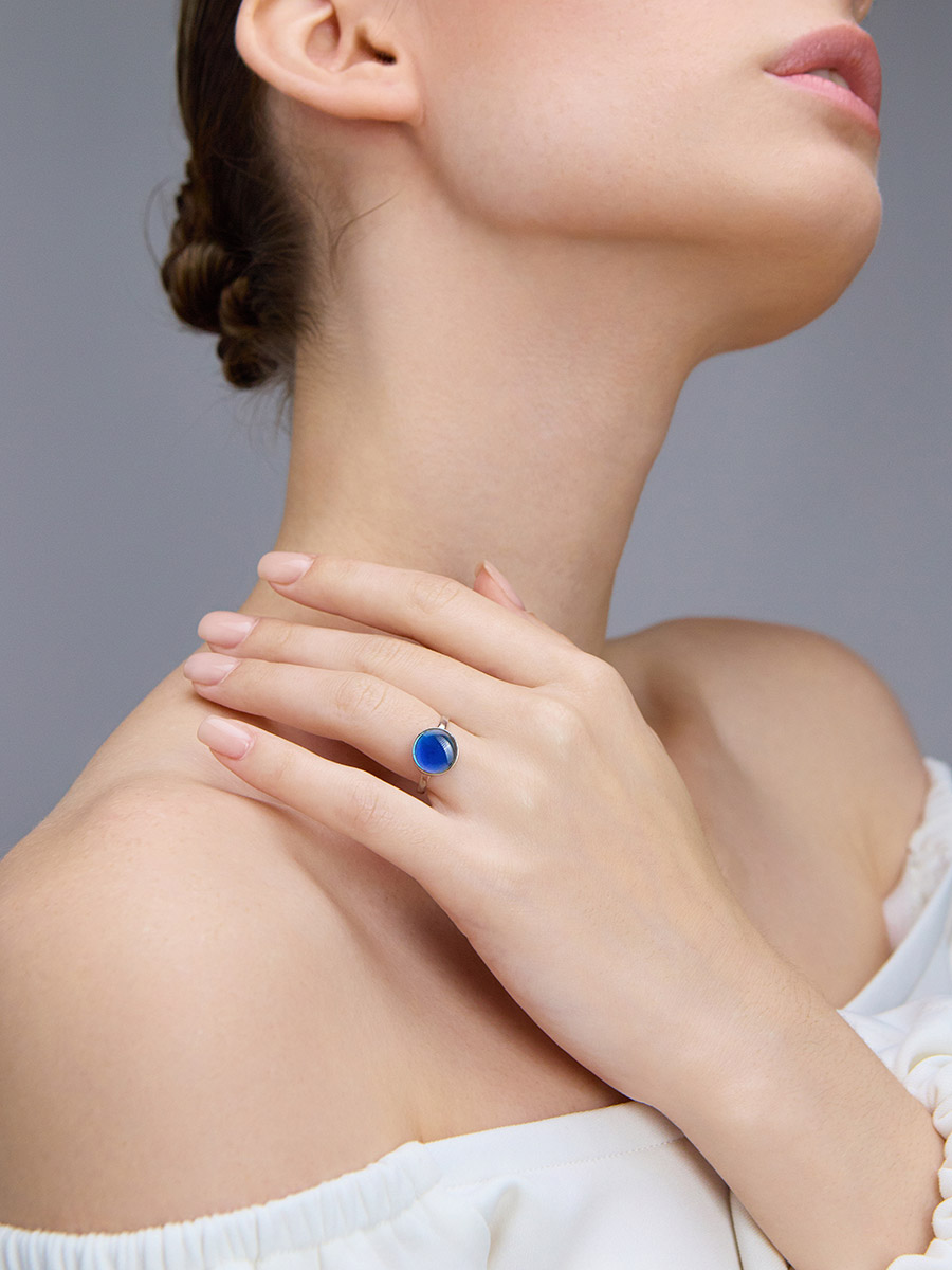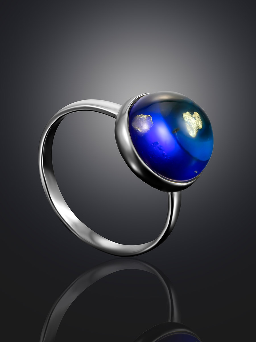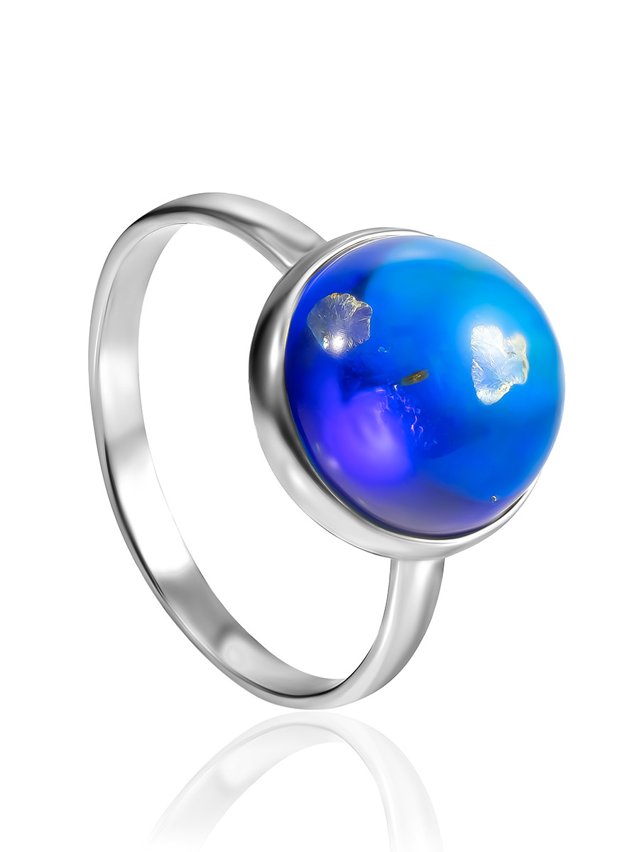 Небольшое кольцо «Сорбонна» с ярко-синим янтарём