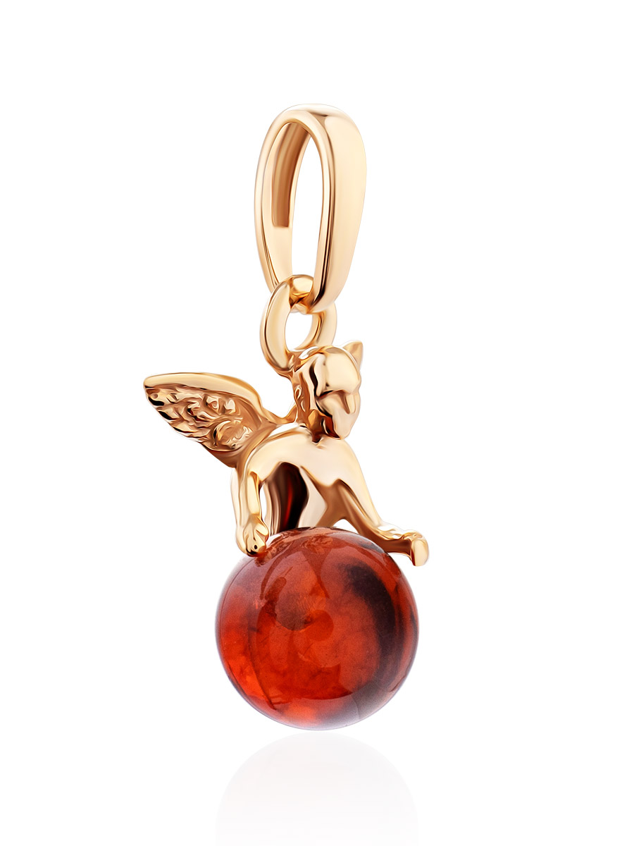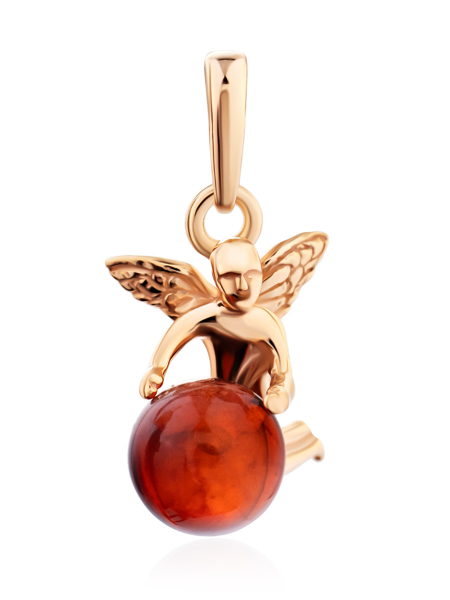 Небольшой кулон с натуральным коньячным янтарём «Ангелок»