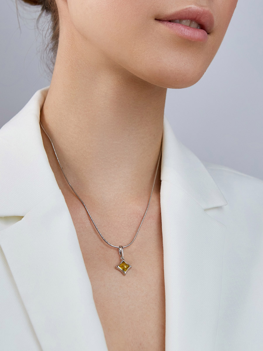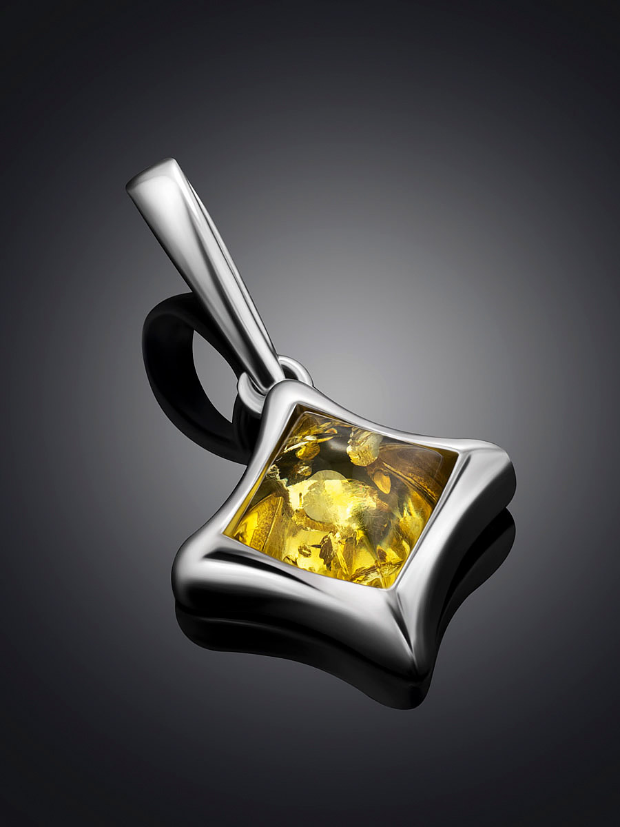 Небольшой кулон со вставкой из натурального янтаря лимонного цвета «Вега»