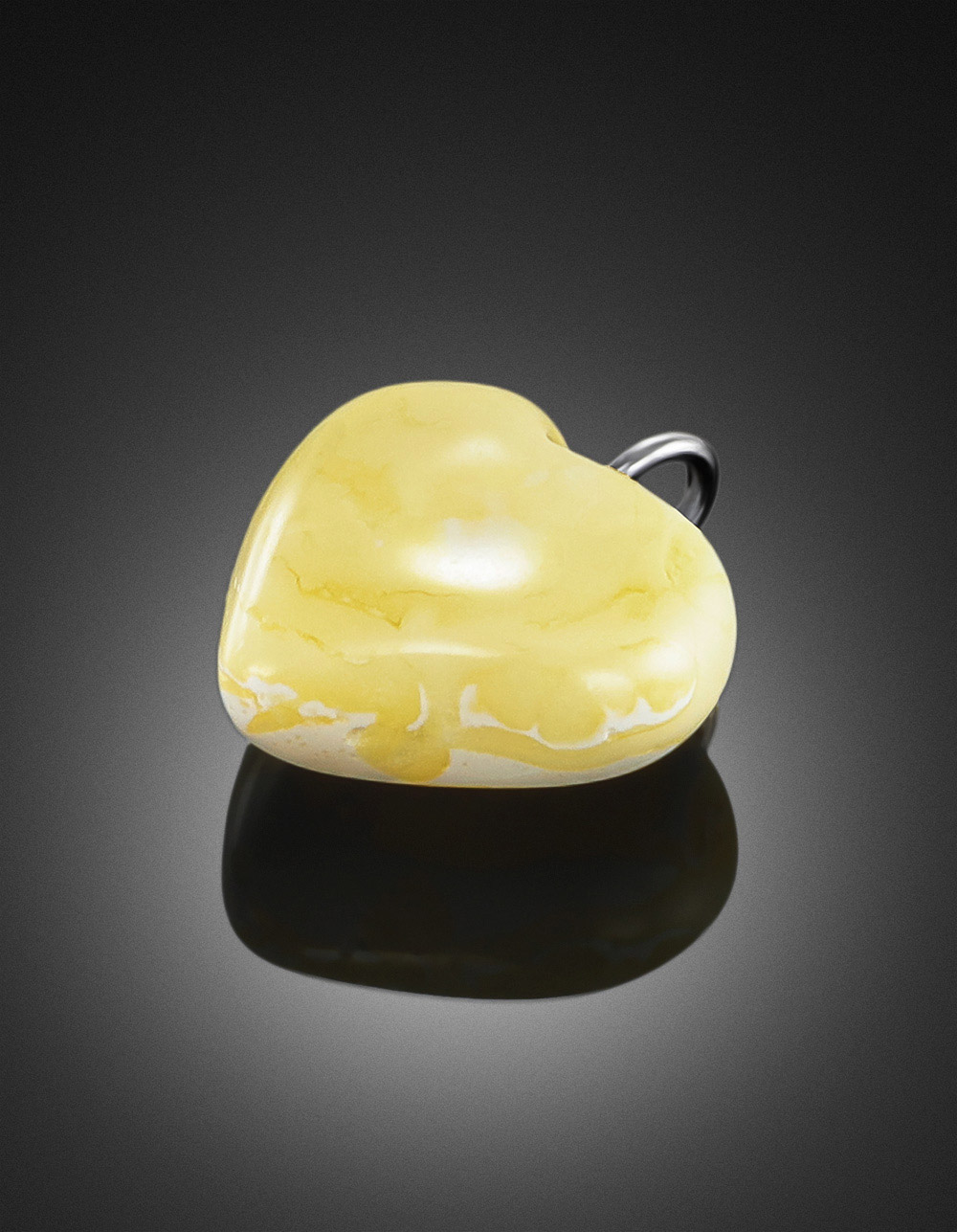 Небольшой кулон в форме сердца из молочно-медового янтаря с пейзажной текстурой