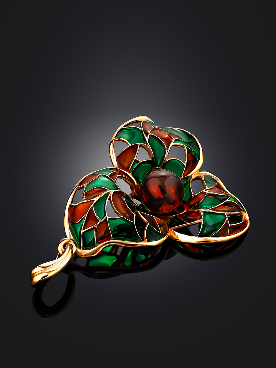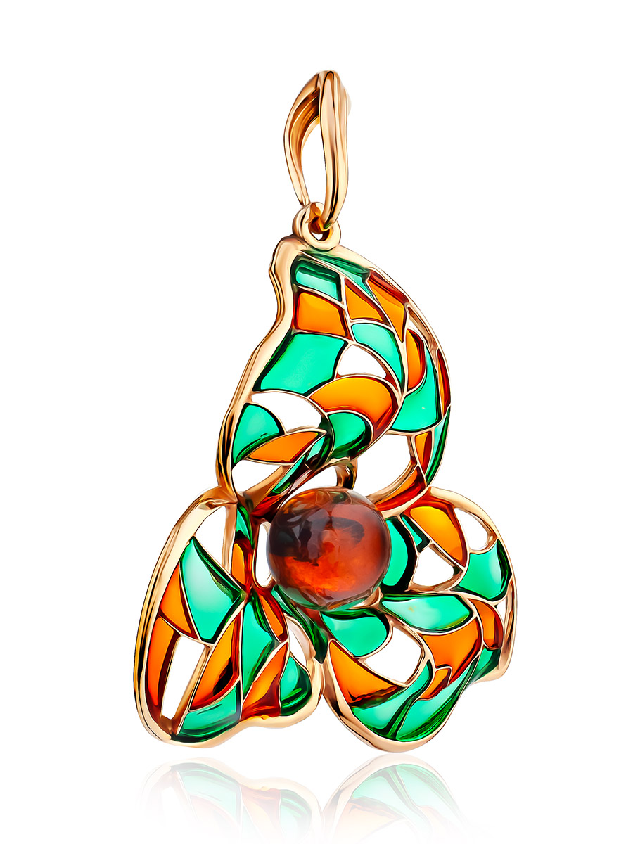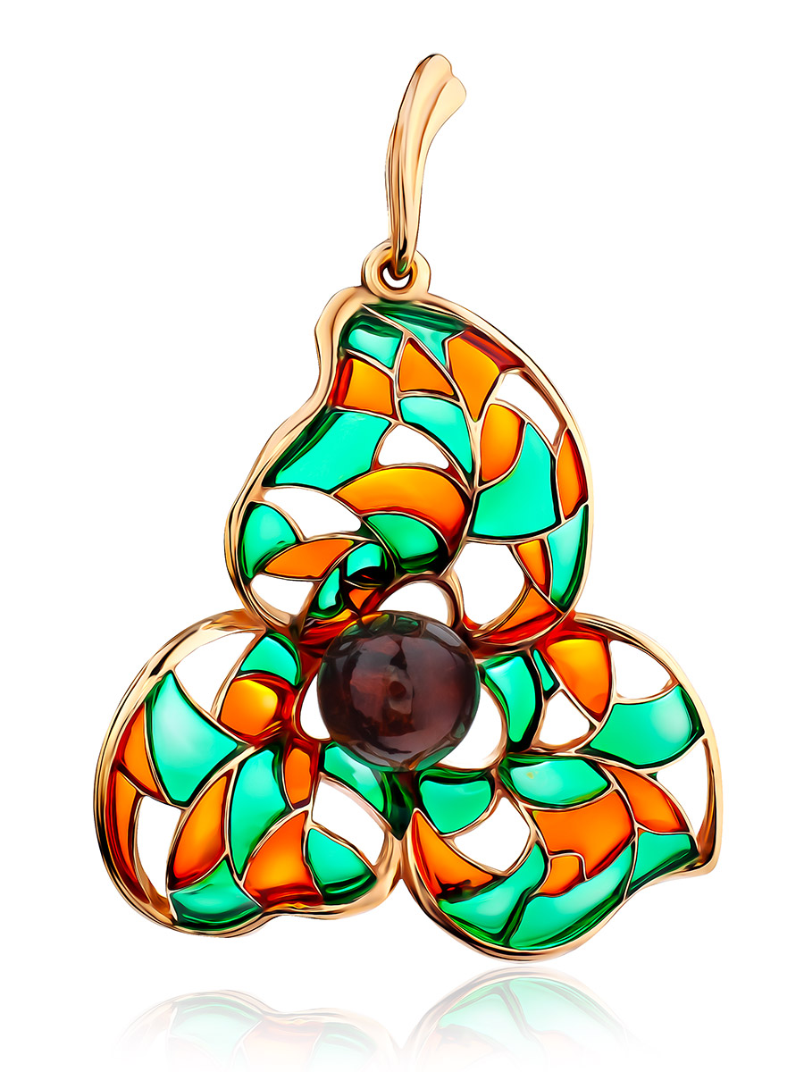 Необычная эмалевая подвеска с натуральным балтийским янтарём Verona