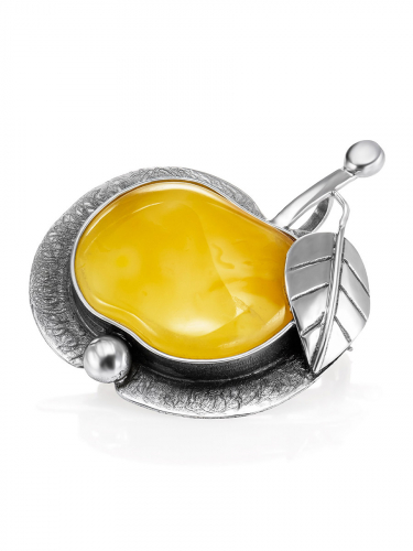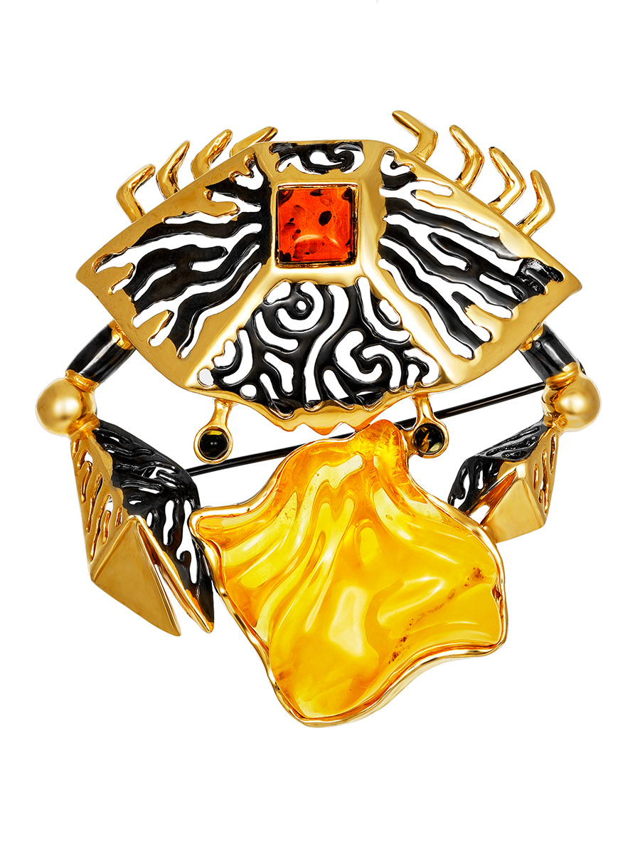 Необычная крупная брошь из янтаря и серебра «Краб»