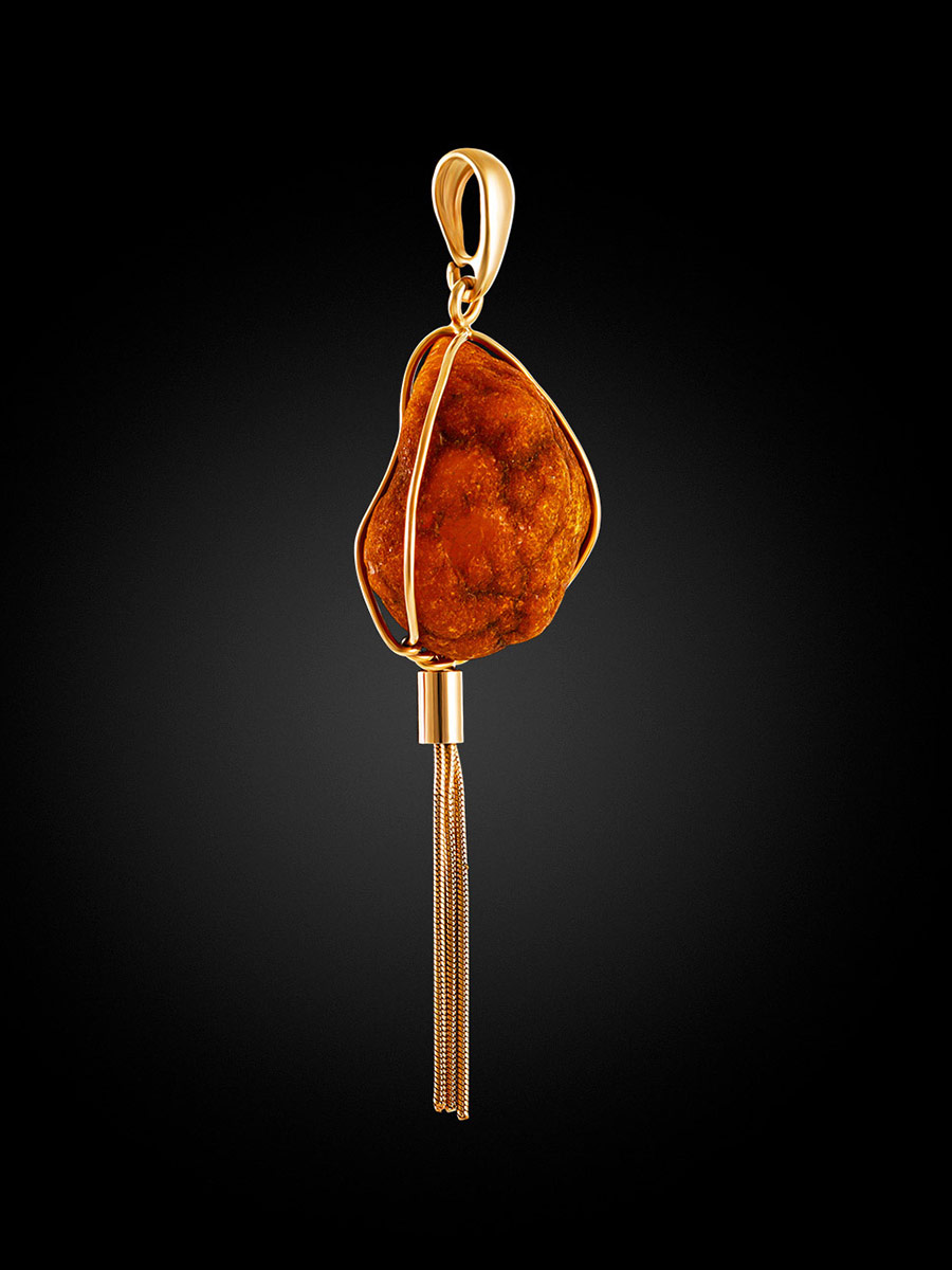 Необычная подвеска из янтаря с природной корочкой в оправе с кисточкой «Неолит»