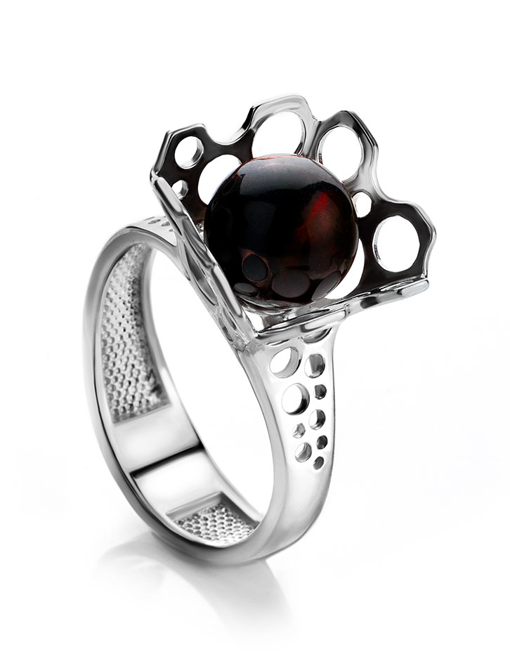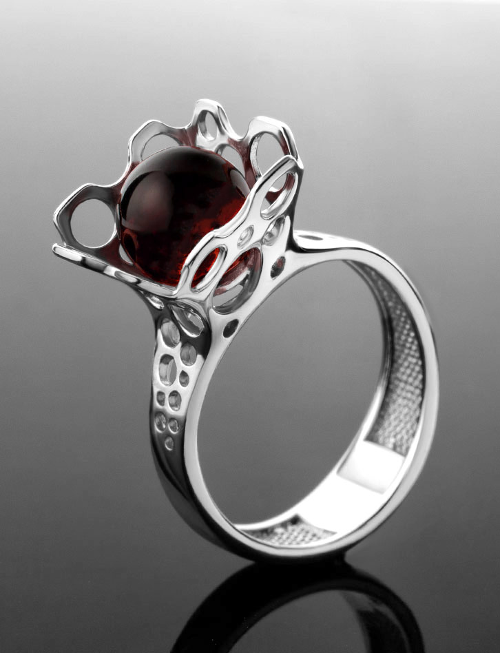 Необычное кольцо из натурального вишнёвого янтаря «Женева»
