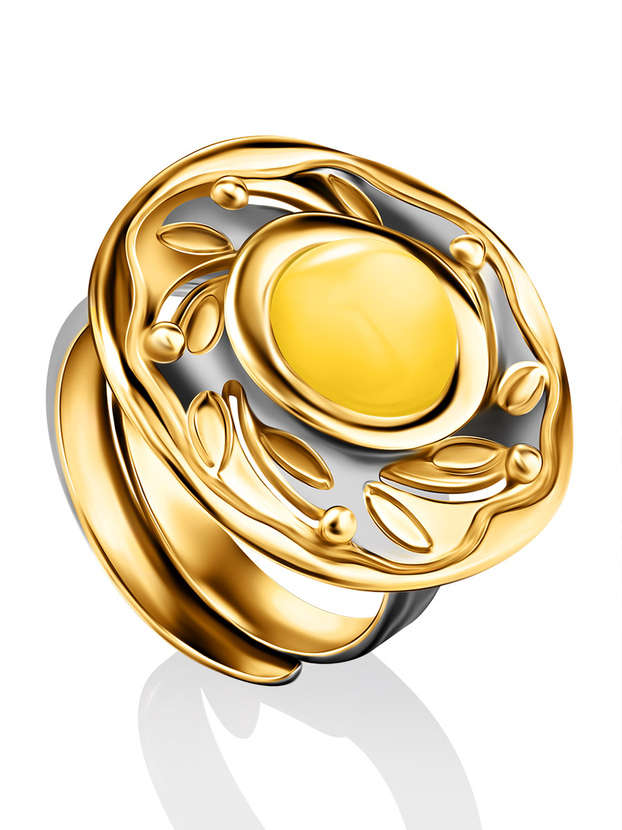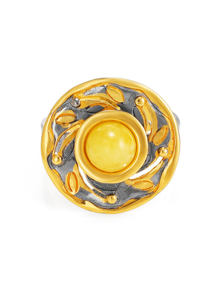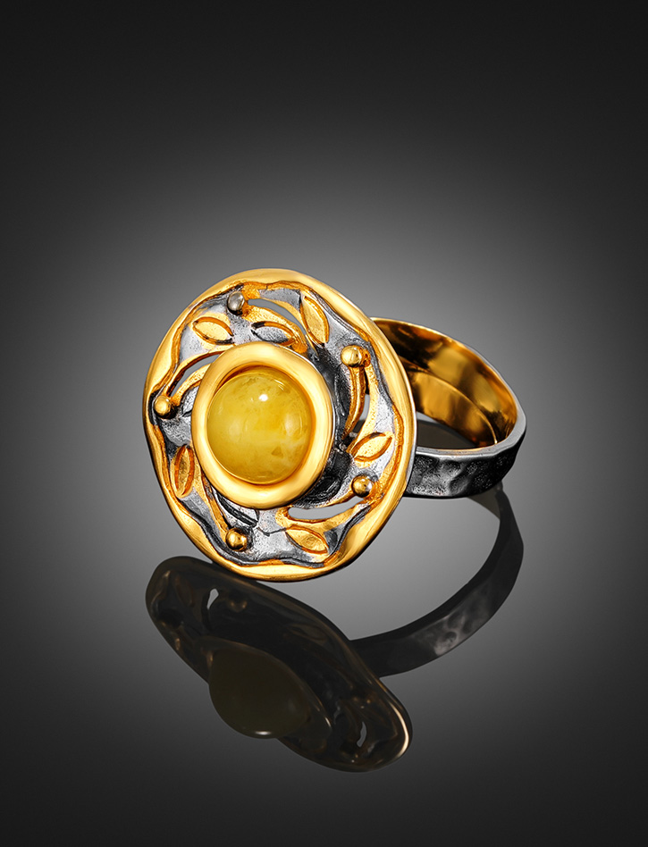 Необычное кольцо из натурального янтаря «Аида»