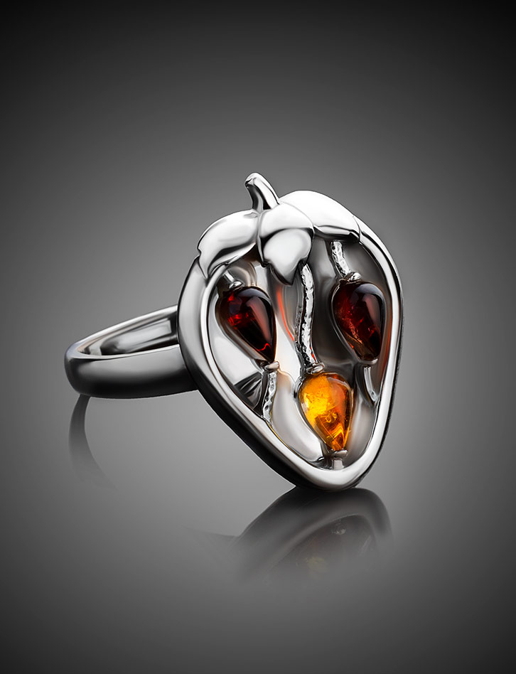 Необычное кольцо из натурального янтаря «Конфитюр»
