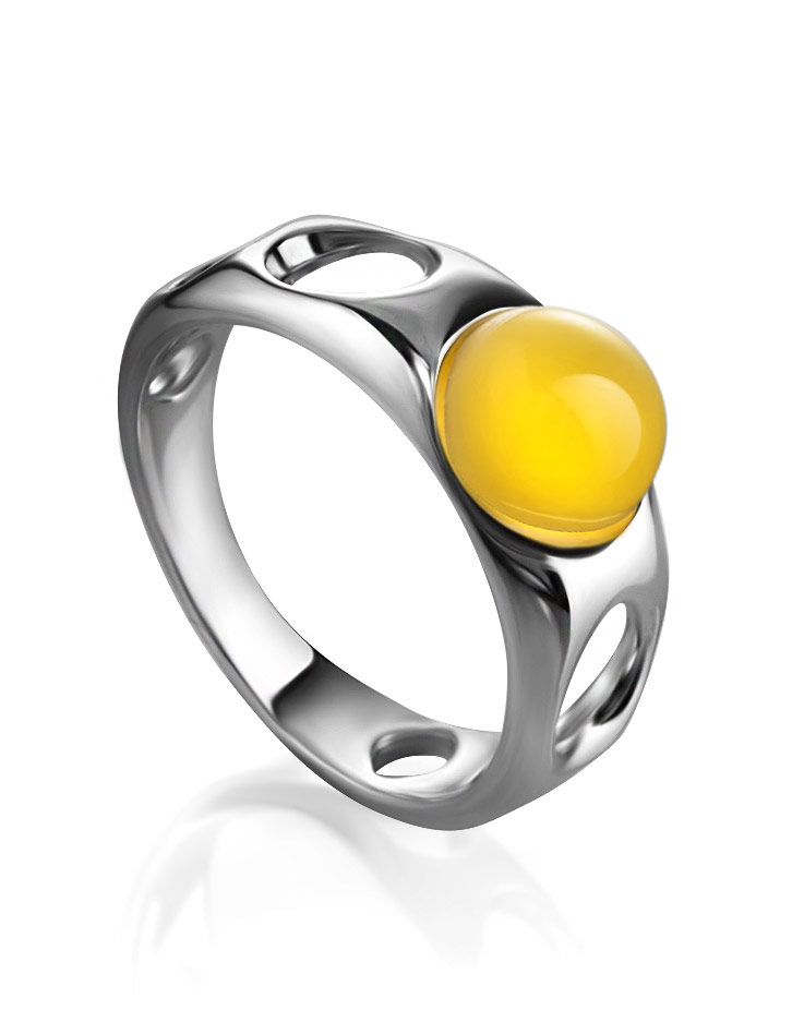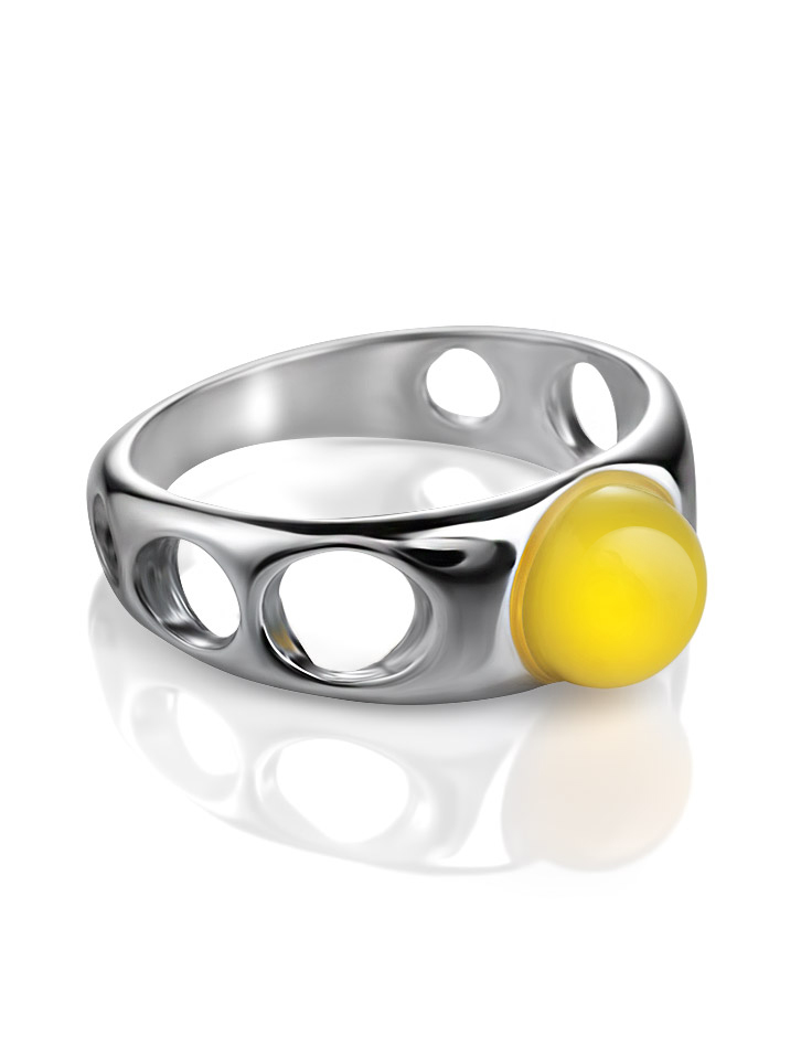 Необычное кольцо из натурального янтаря медового цвета «Энигма»