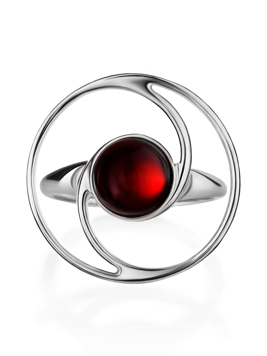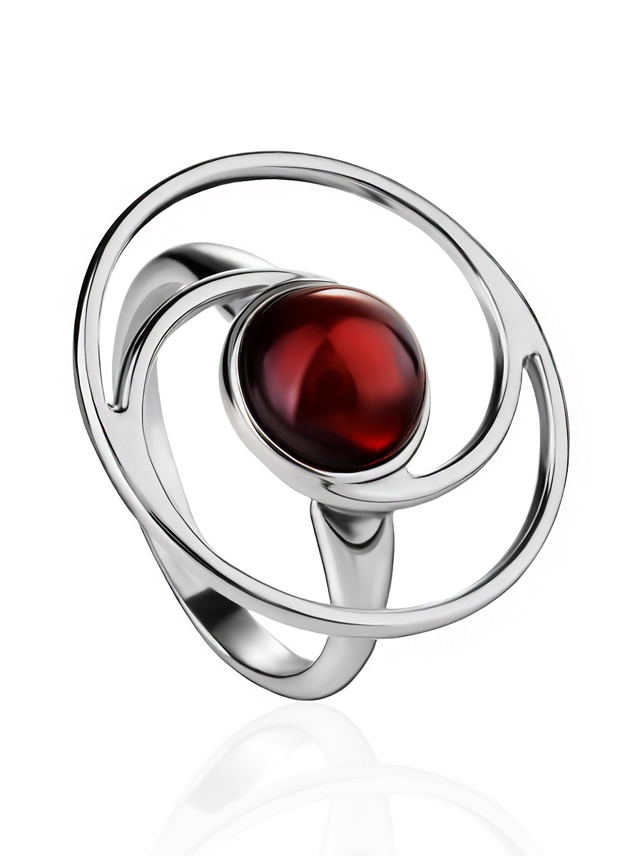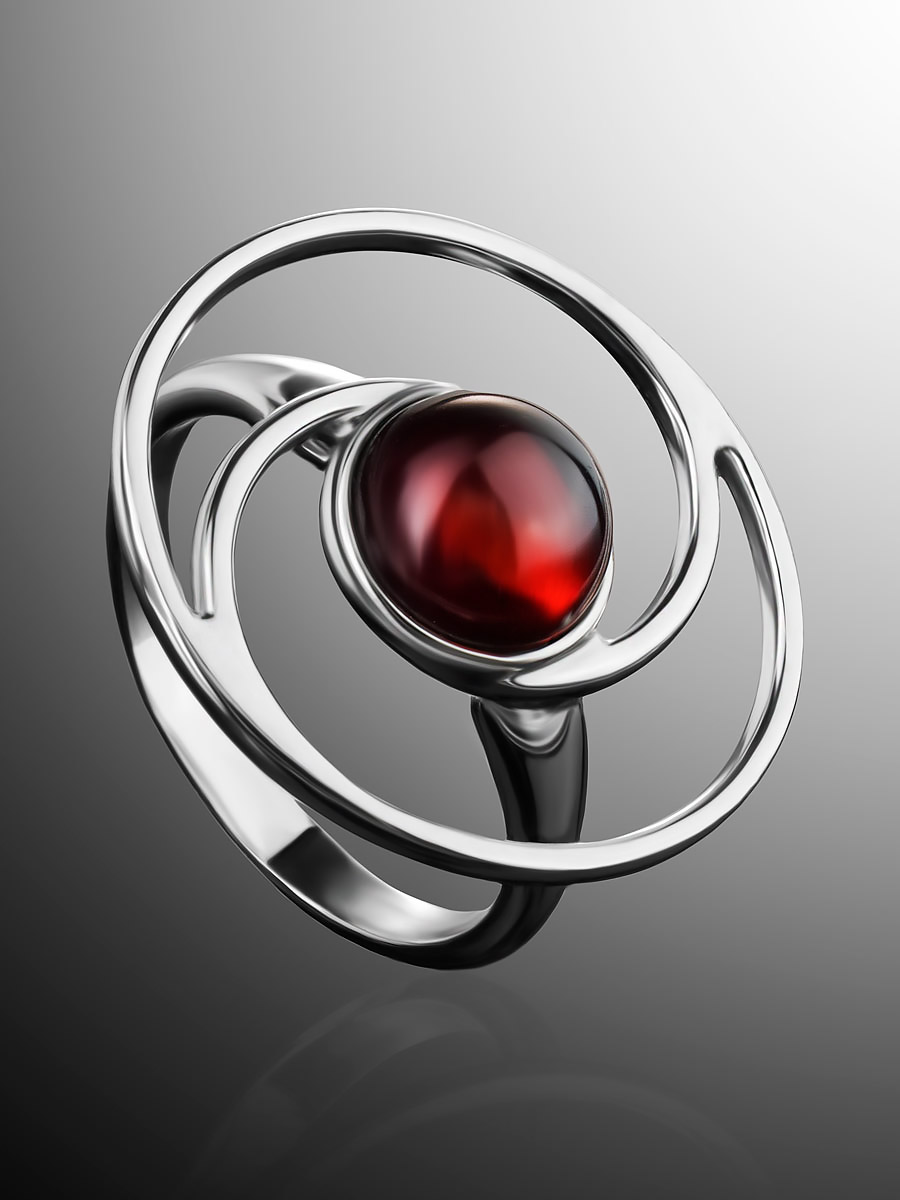 Необычное кольцо из тёмно-коньячного янтаря «Люмьер»