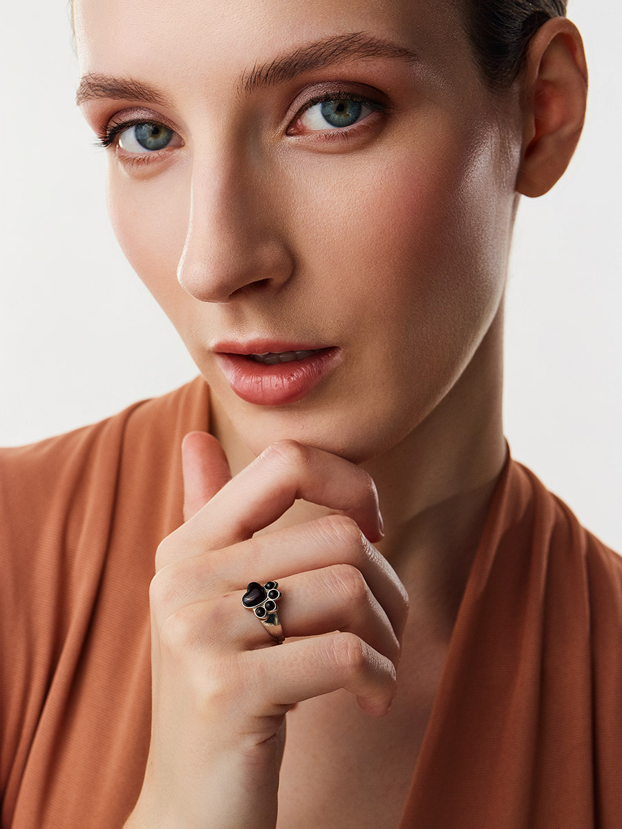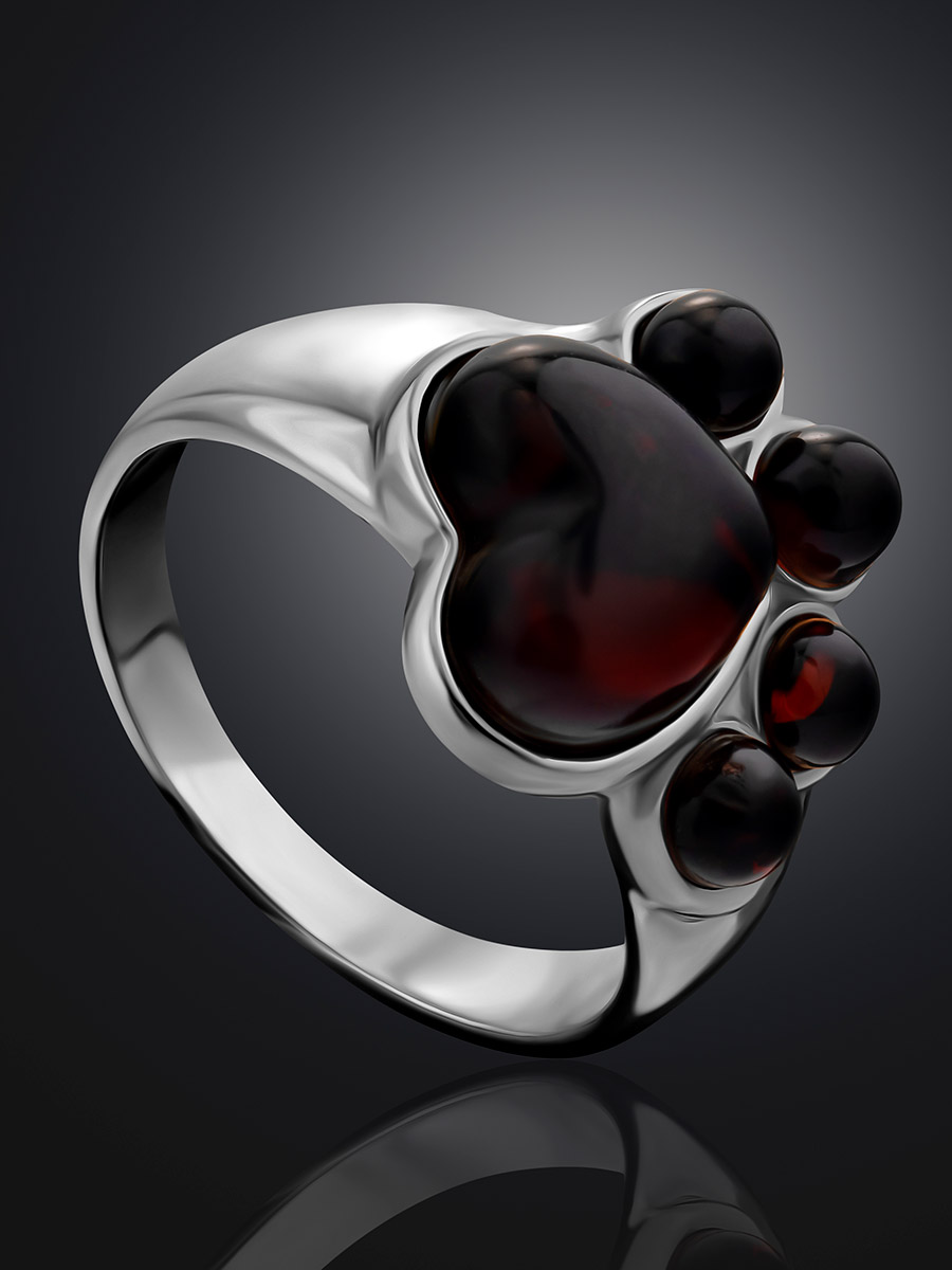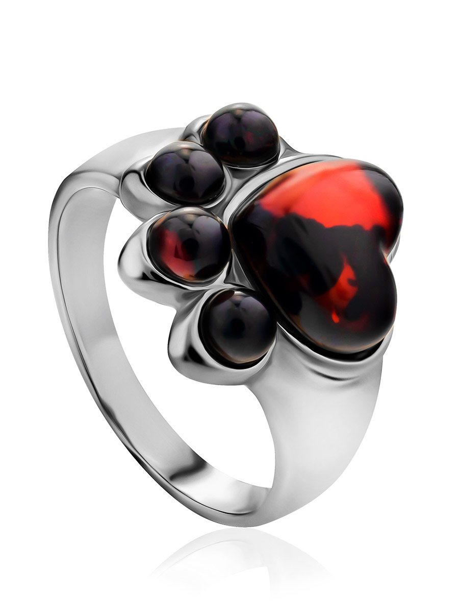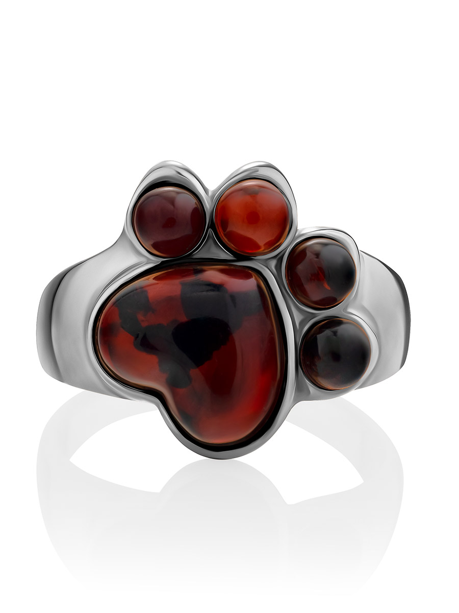 Необычное кольцо из вишнёвого янтаря «Лапки»