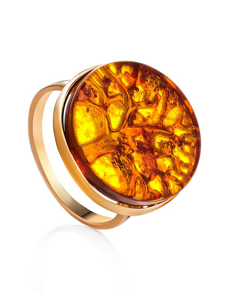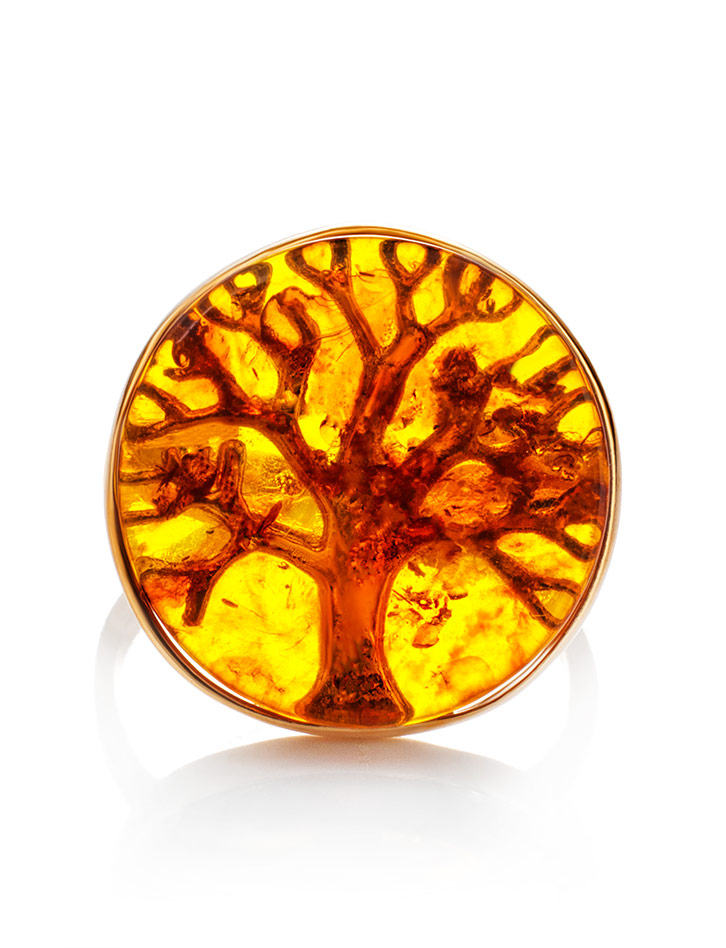 Необычное кольцо с янтарём коньячного цвета «Бельтайн»
