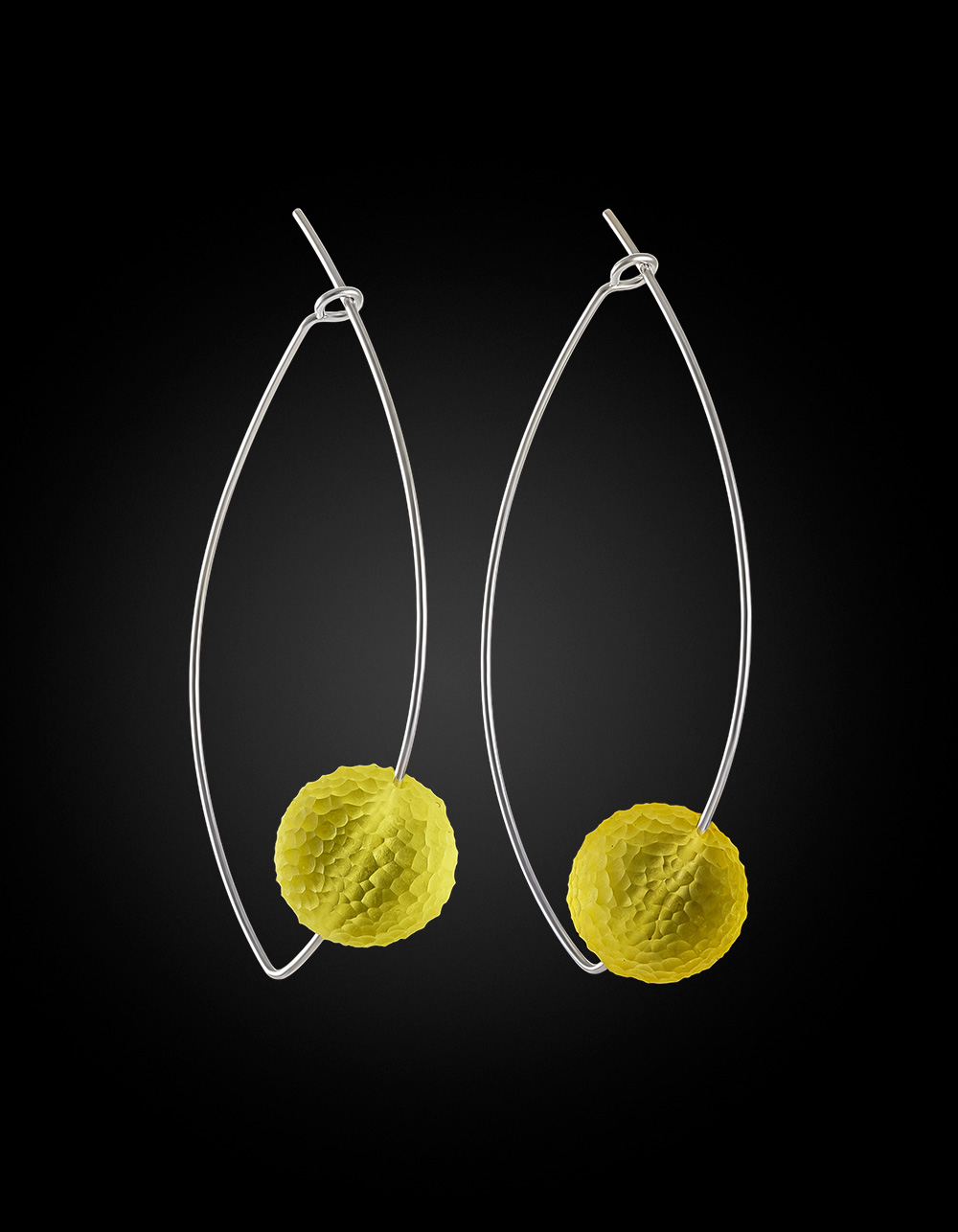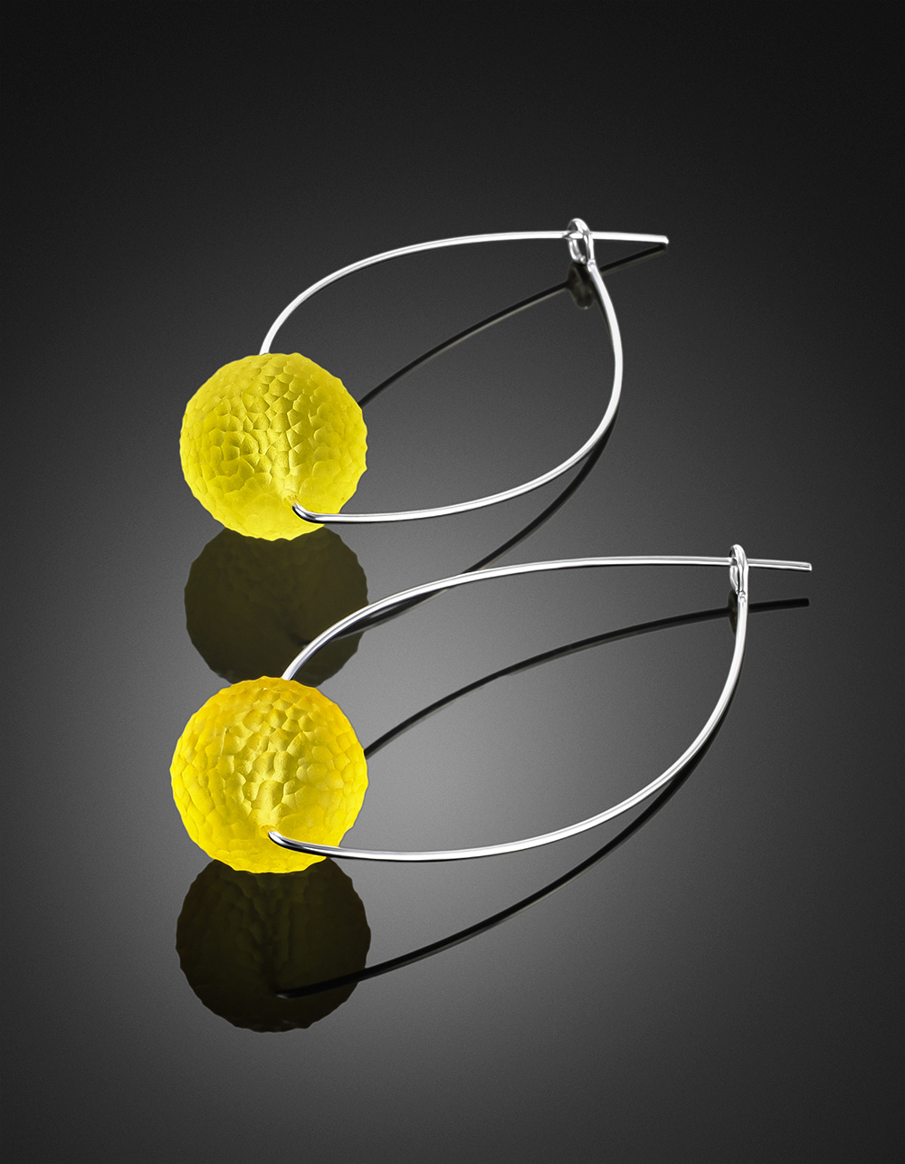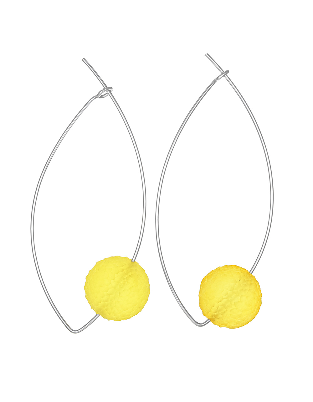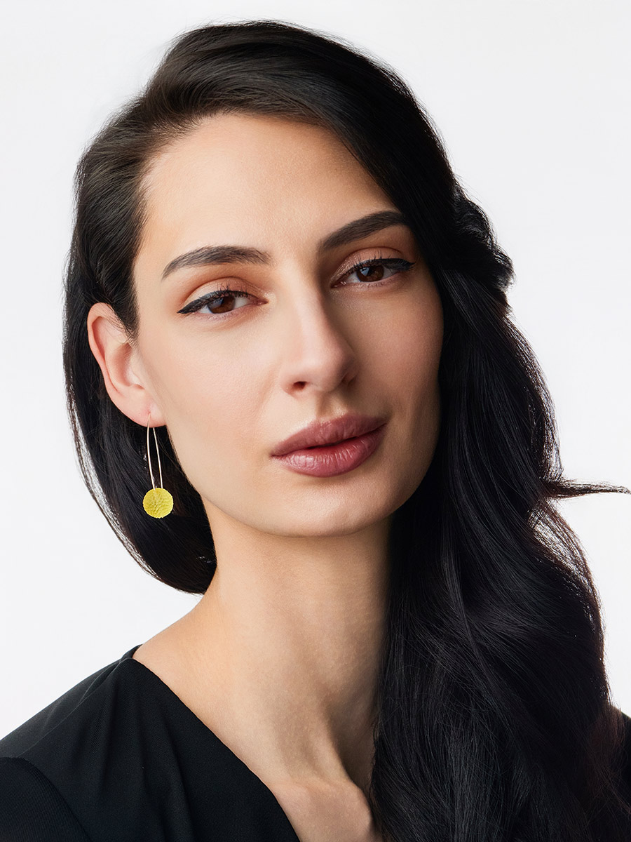 Необычные лёгкие серьги «Марс» с рельефным лимонным янтарём
