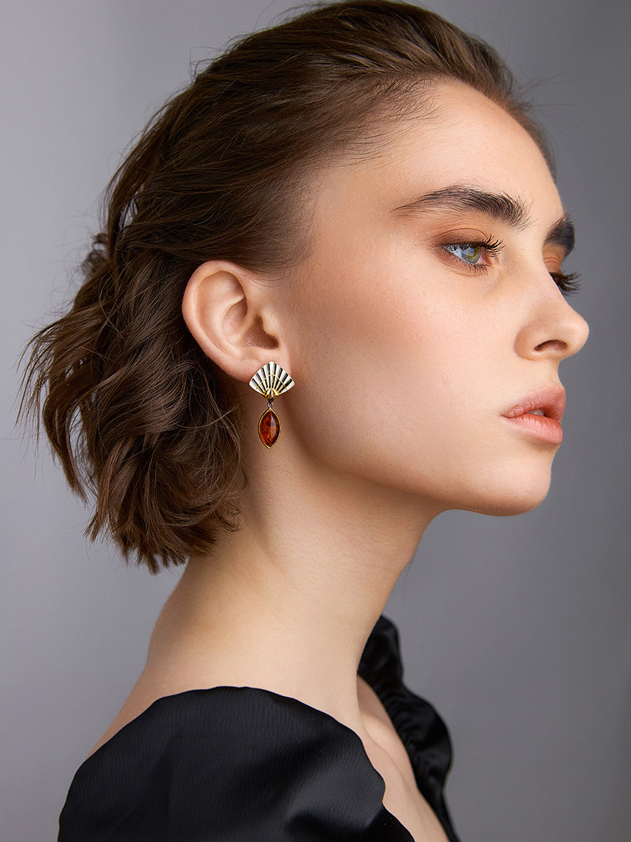 Необычные серьги из коньячного янтаря «Фараон»