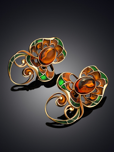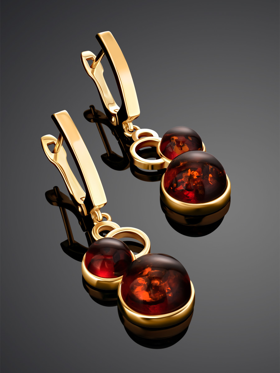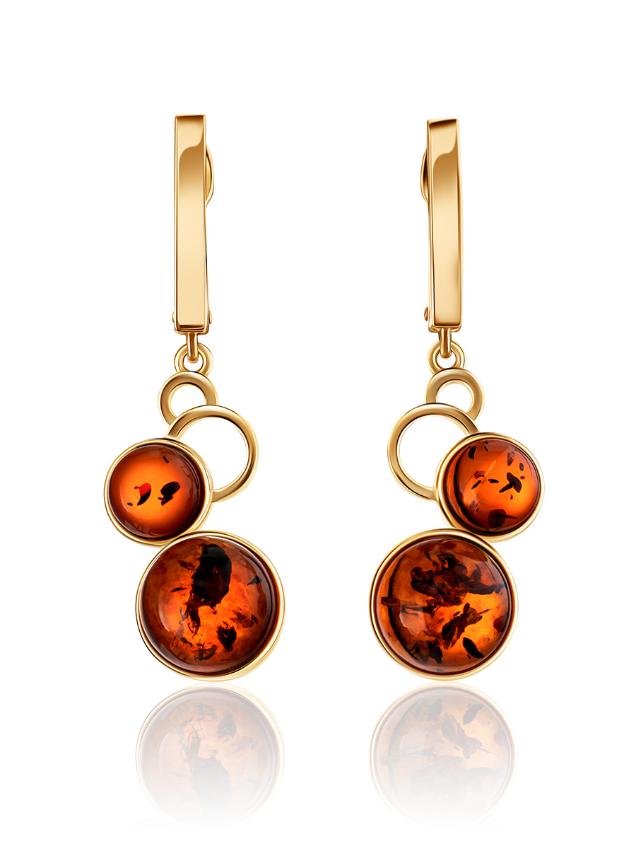 Необычные серьги из янтаря коньячного цвета «Перфектум»