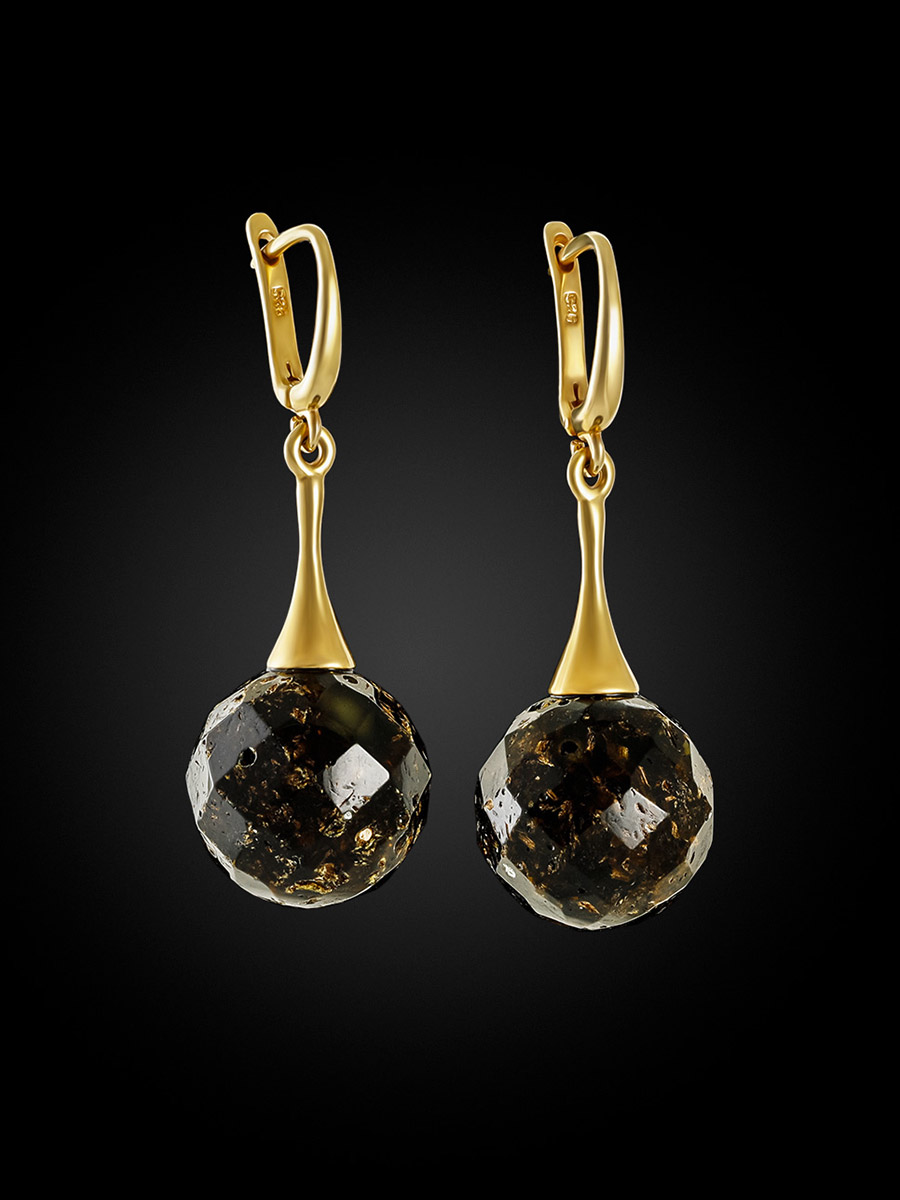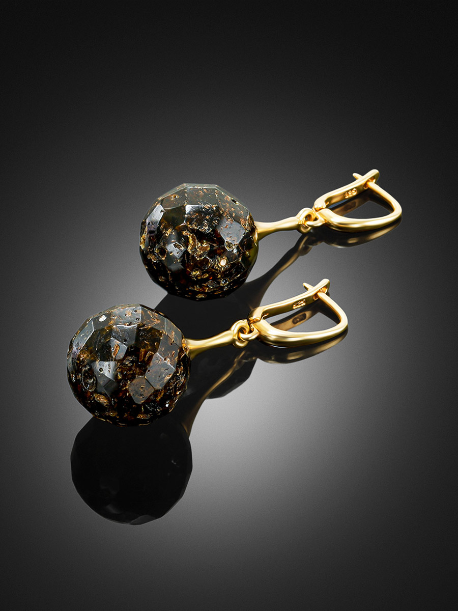Необычные серьги «Метеорит алмазный» из натурального янтаря