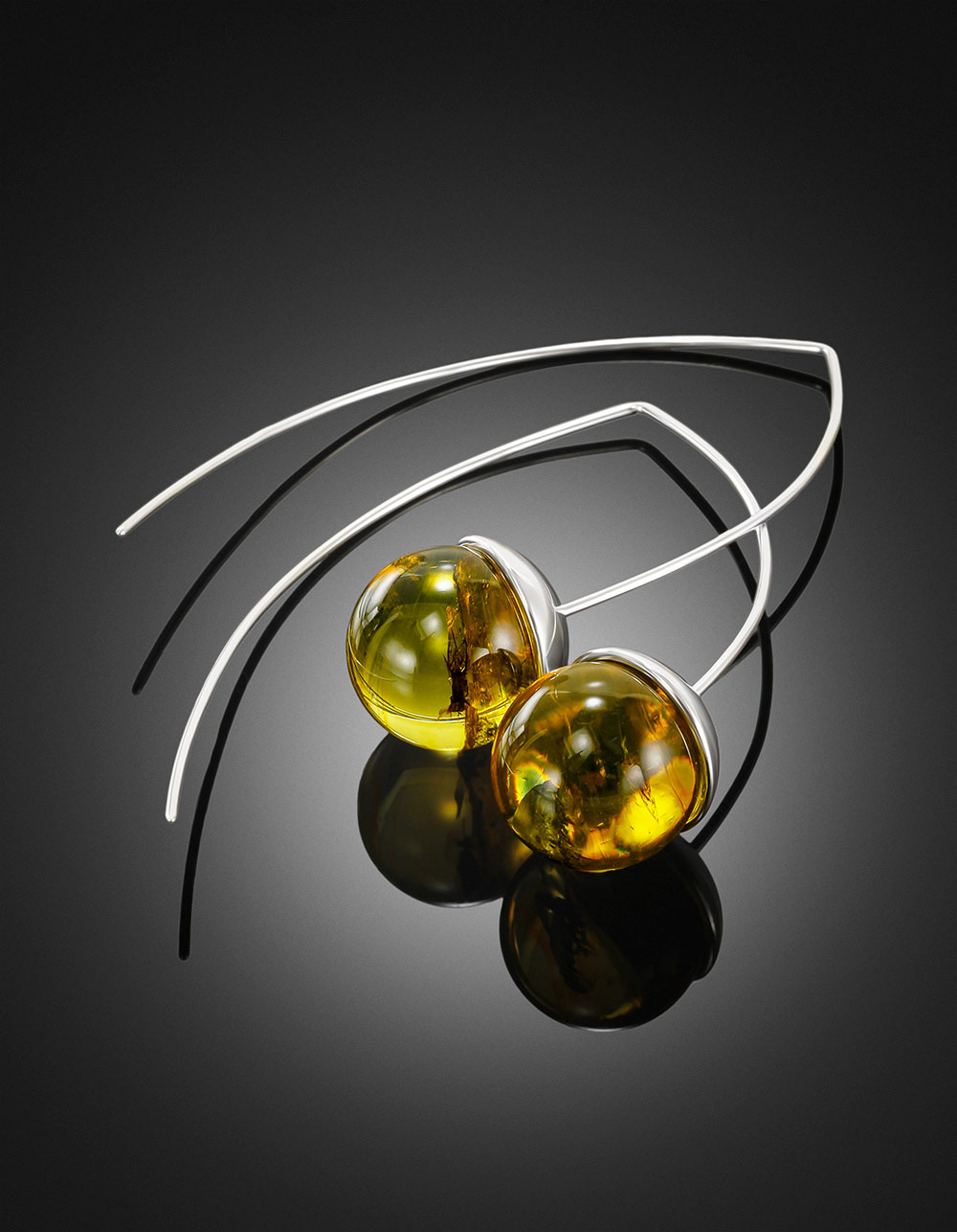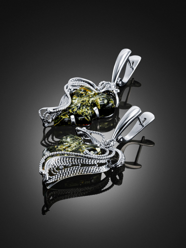 Необычные удлинённые серьги из янтаря с насекомыми «Клио»