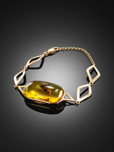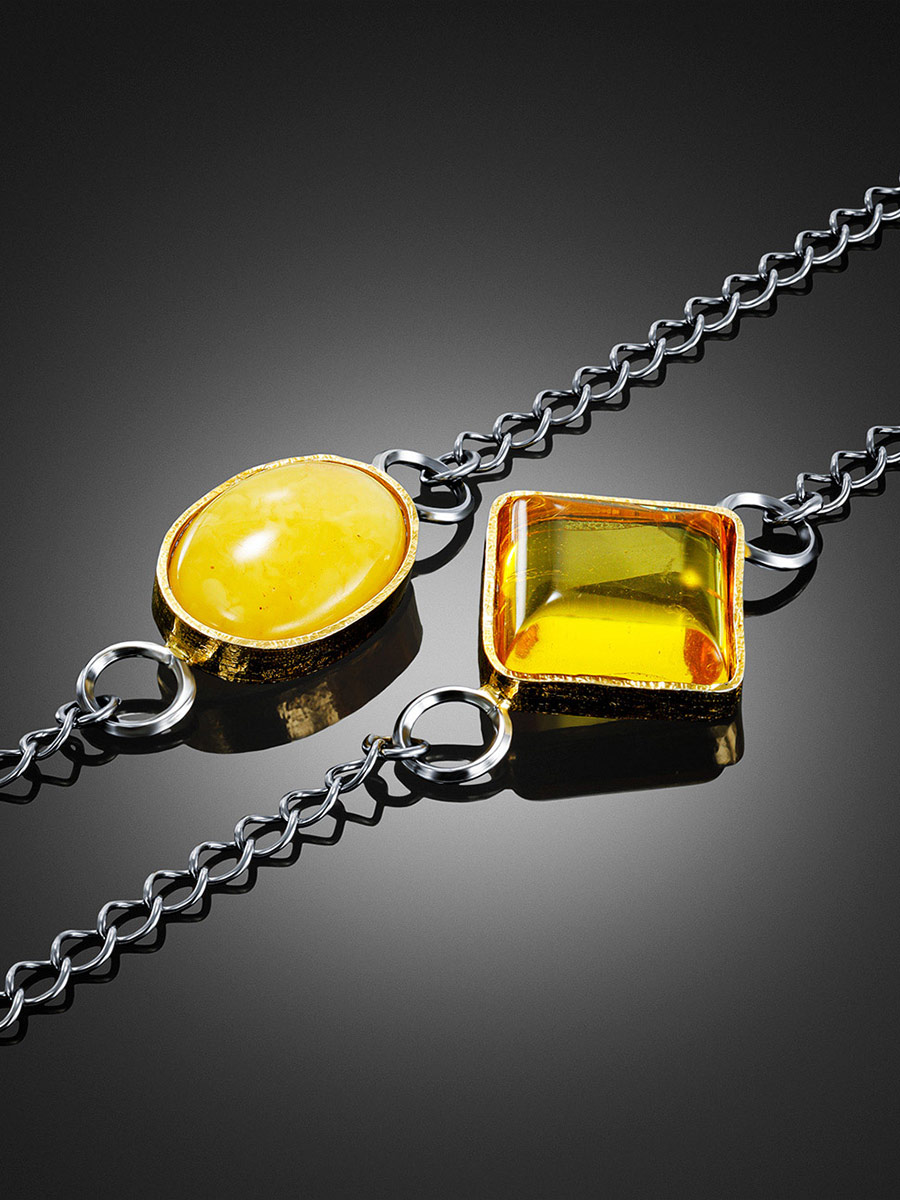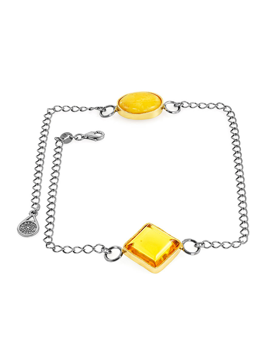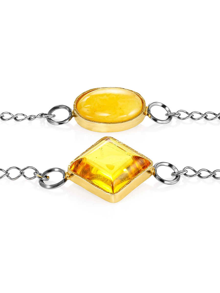 Необычный браслет-цепочка в два оборота с янтарными вставками