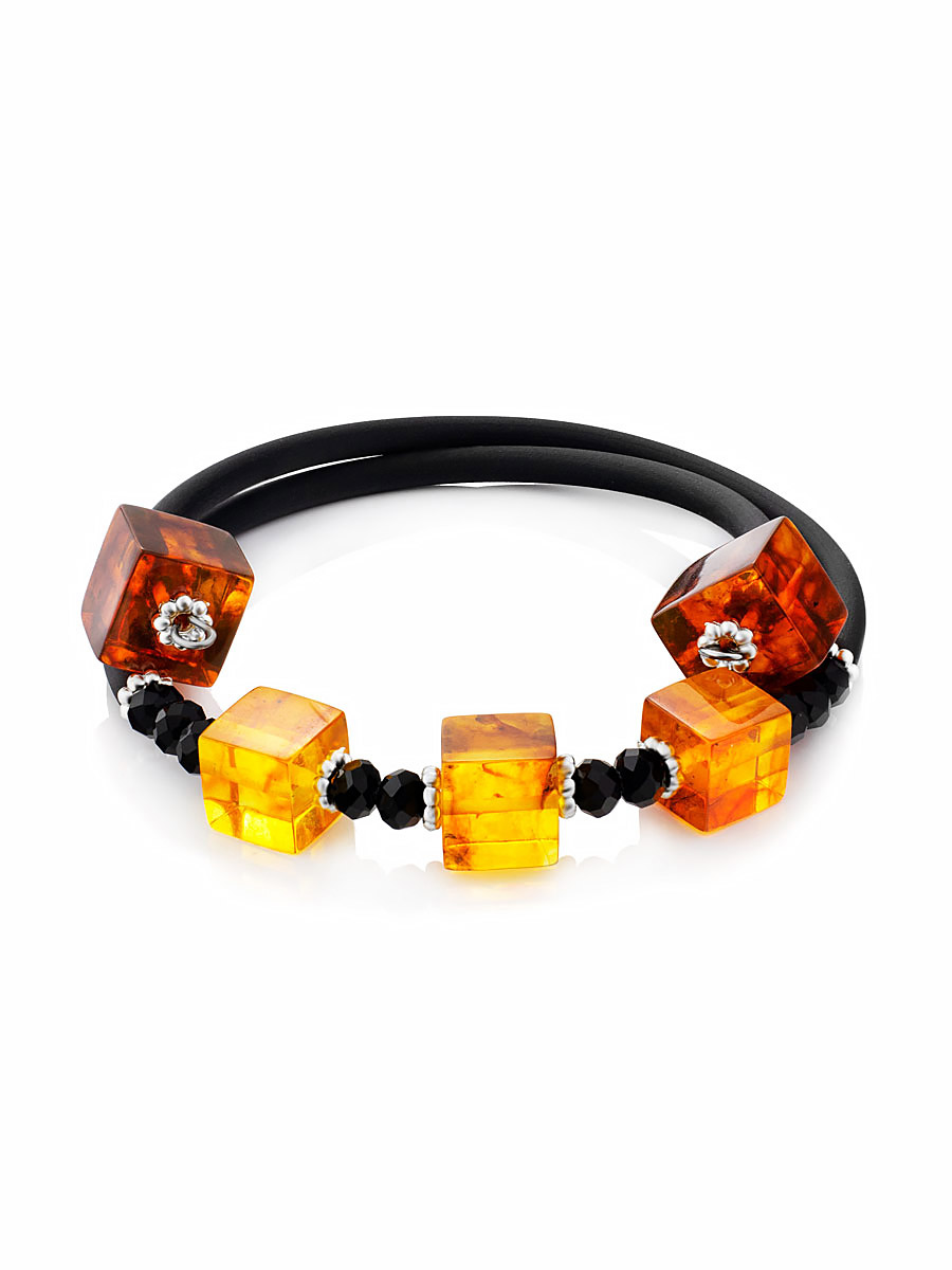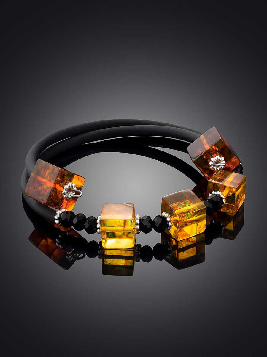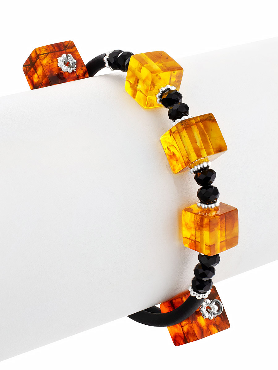 Необычный каучуковый браслет «Оклахома», украшенный кубиками янтаря
