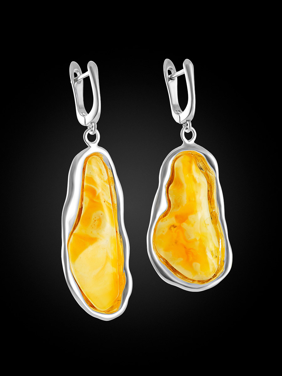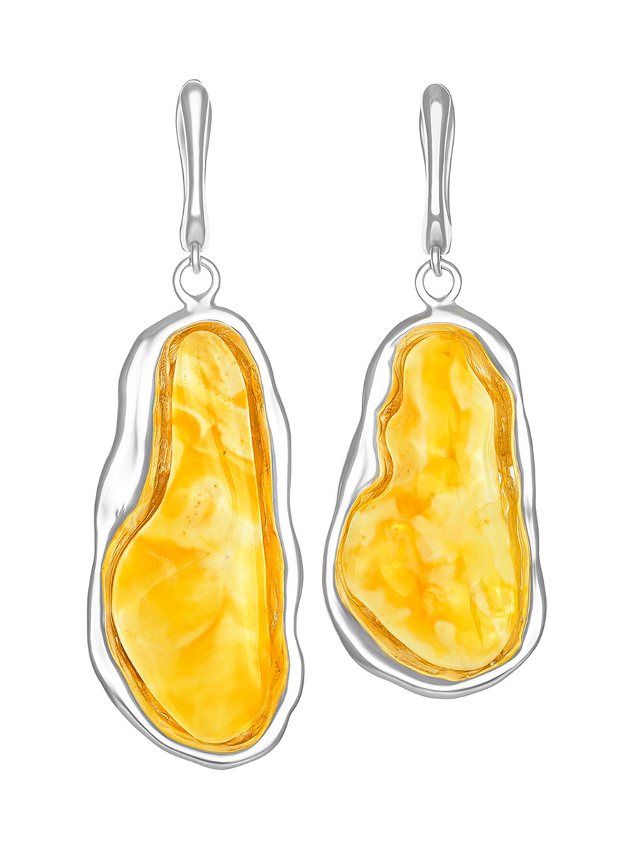 Неповторимые серьги с чудным текстурным янтарём «Лагуна»