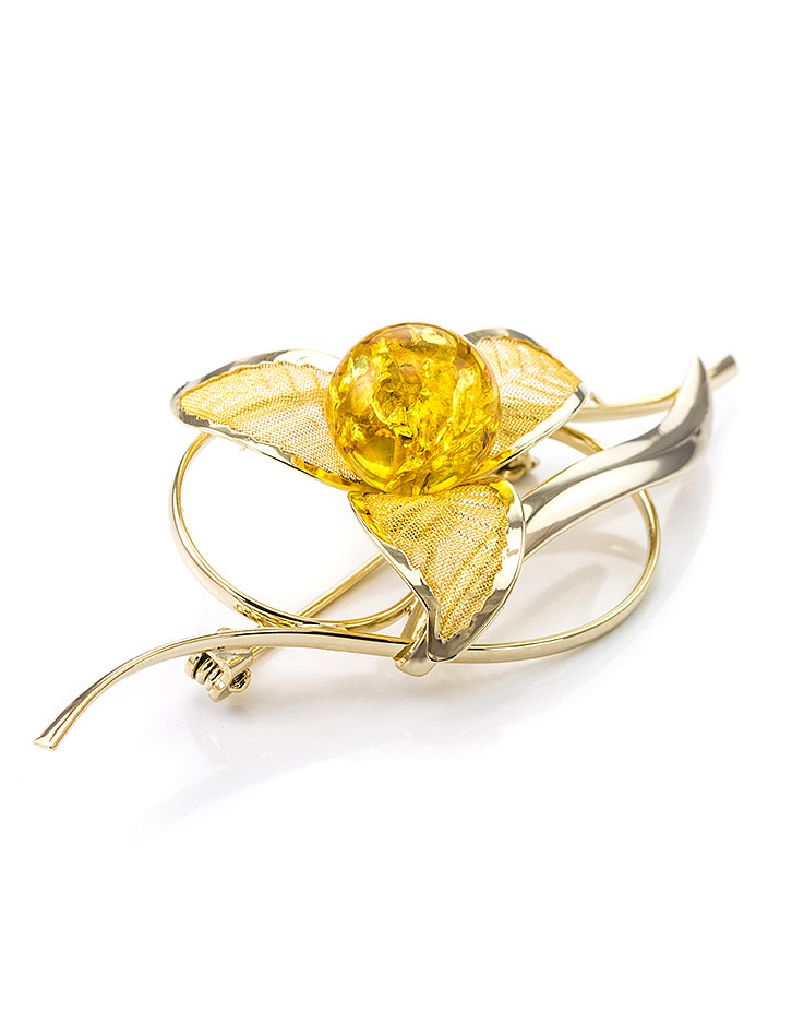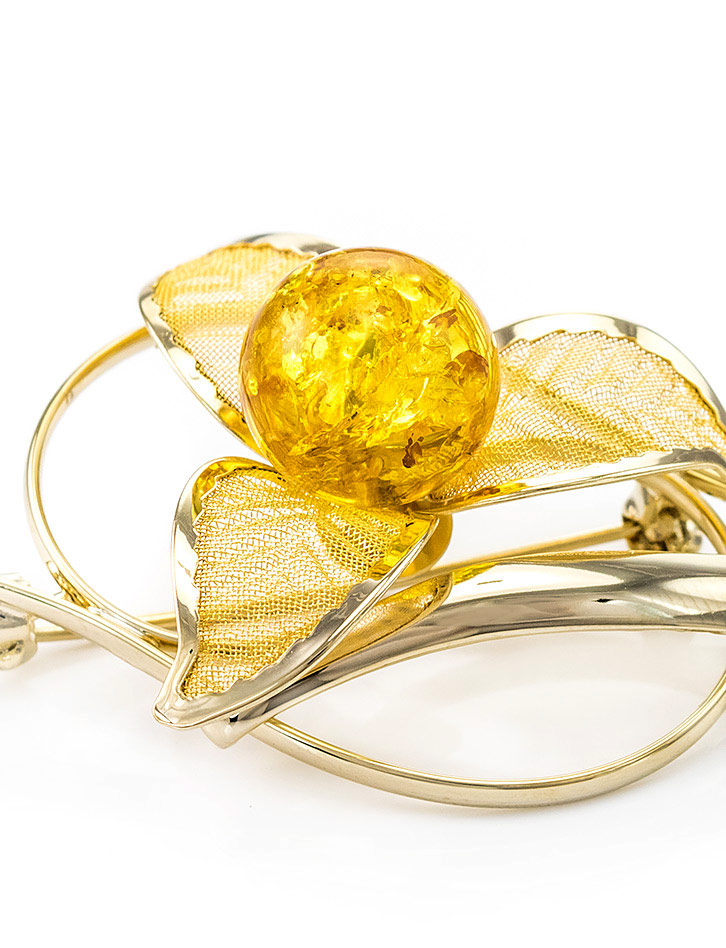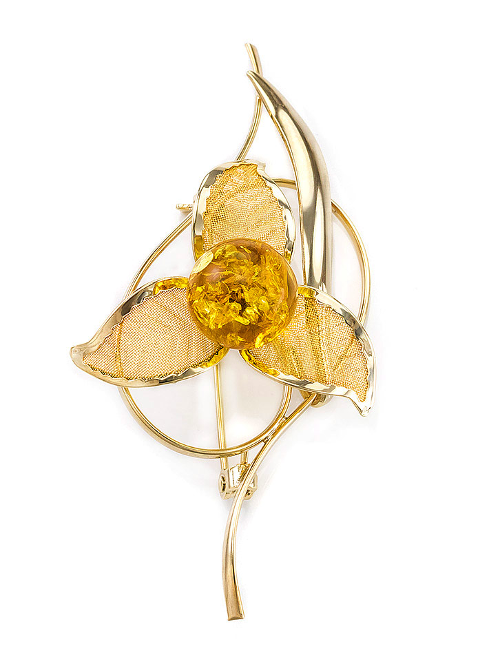 Нежная брошь Beoluna, украшенная натуральным балтийским янтарём
