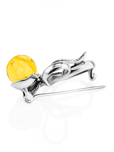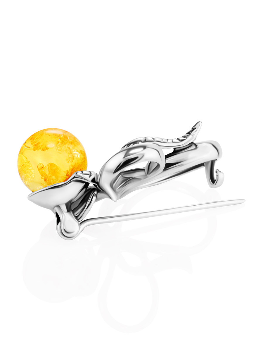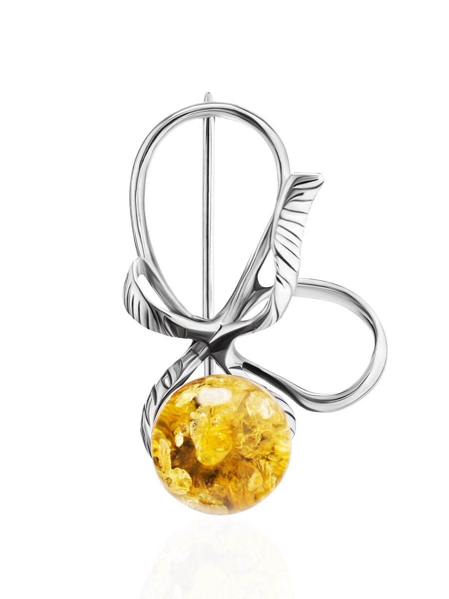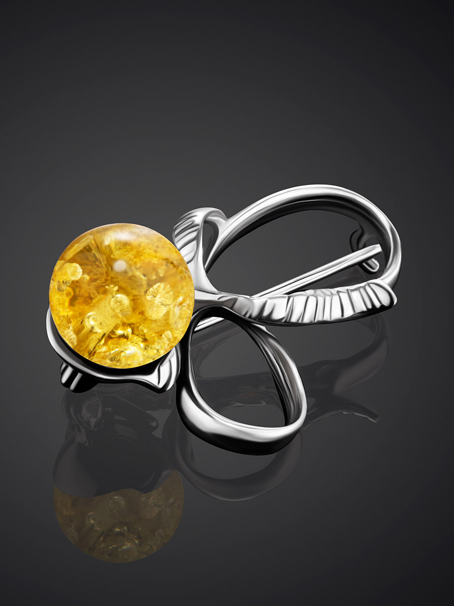 Нежная брошь из ярко-лимонного янтаря «Черри»