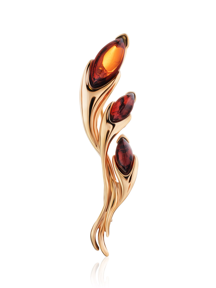 Нежная брошь с натуральным коньячным янтарём «Вереск»