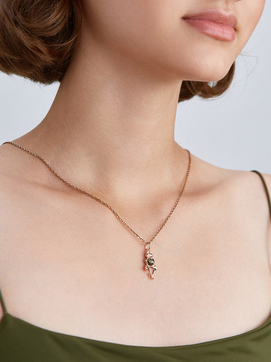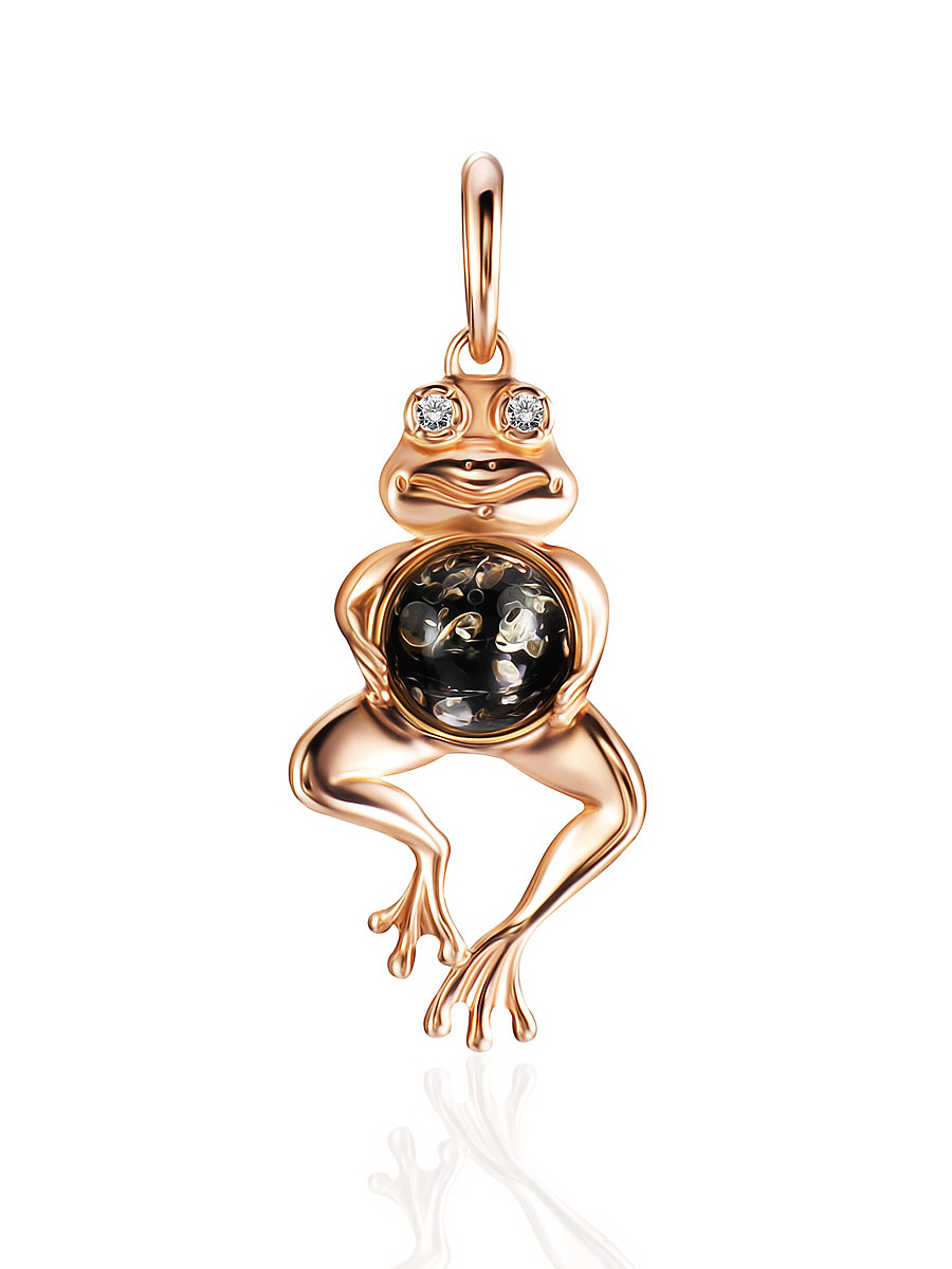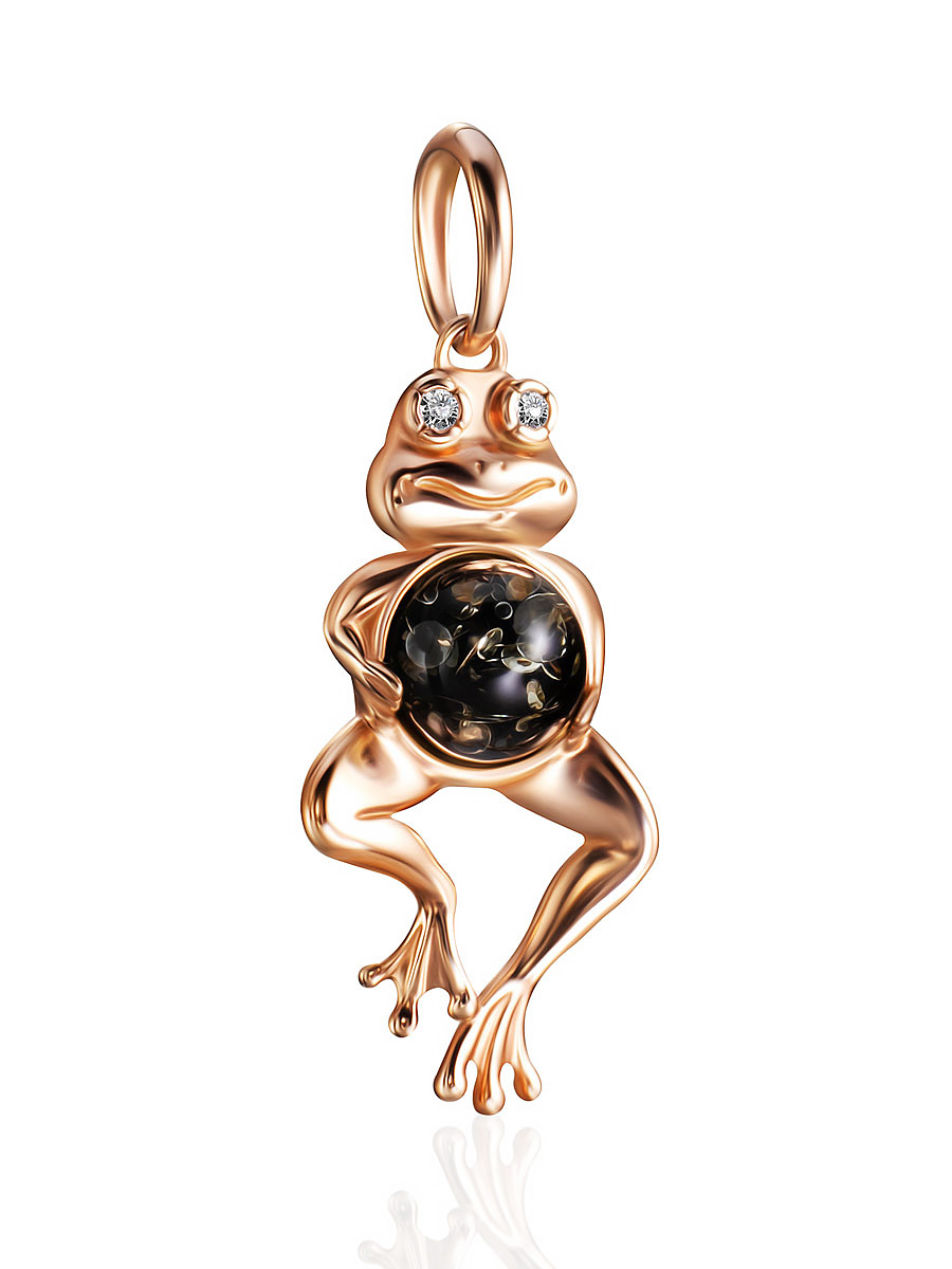 Нежная позолоченная подвеска «Лягуха» из натурального янтаря зелёного цвета