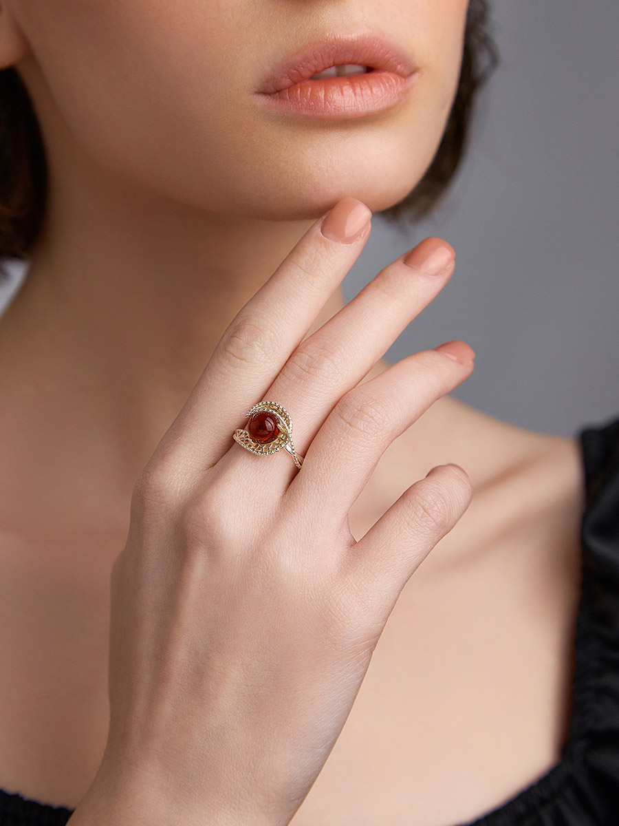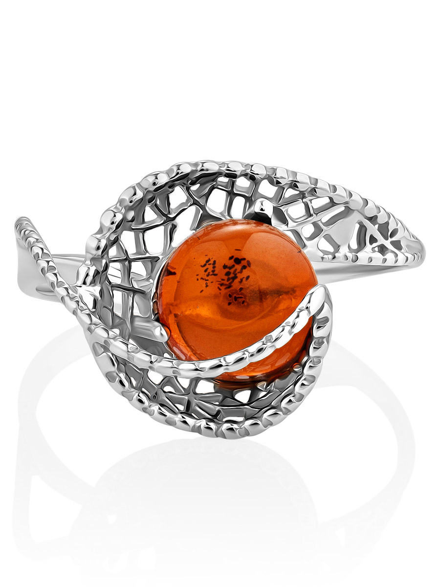 Нежное ажурное кольцо из с янтарём коньячного цвета «Венера»