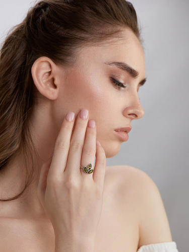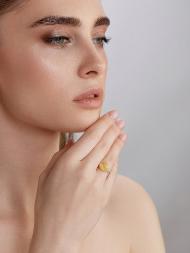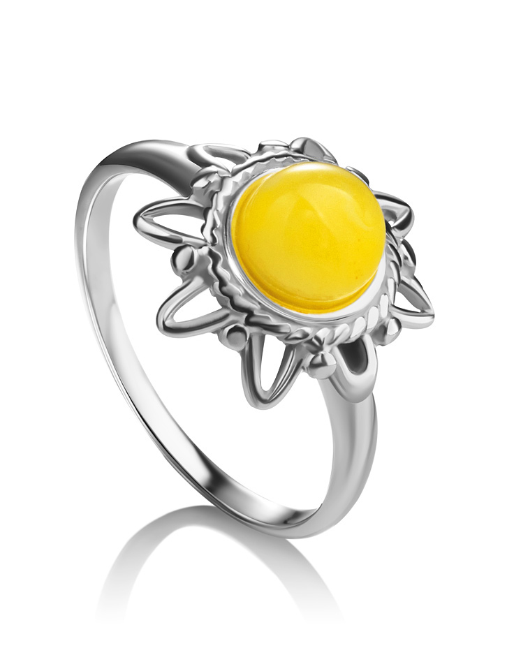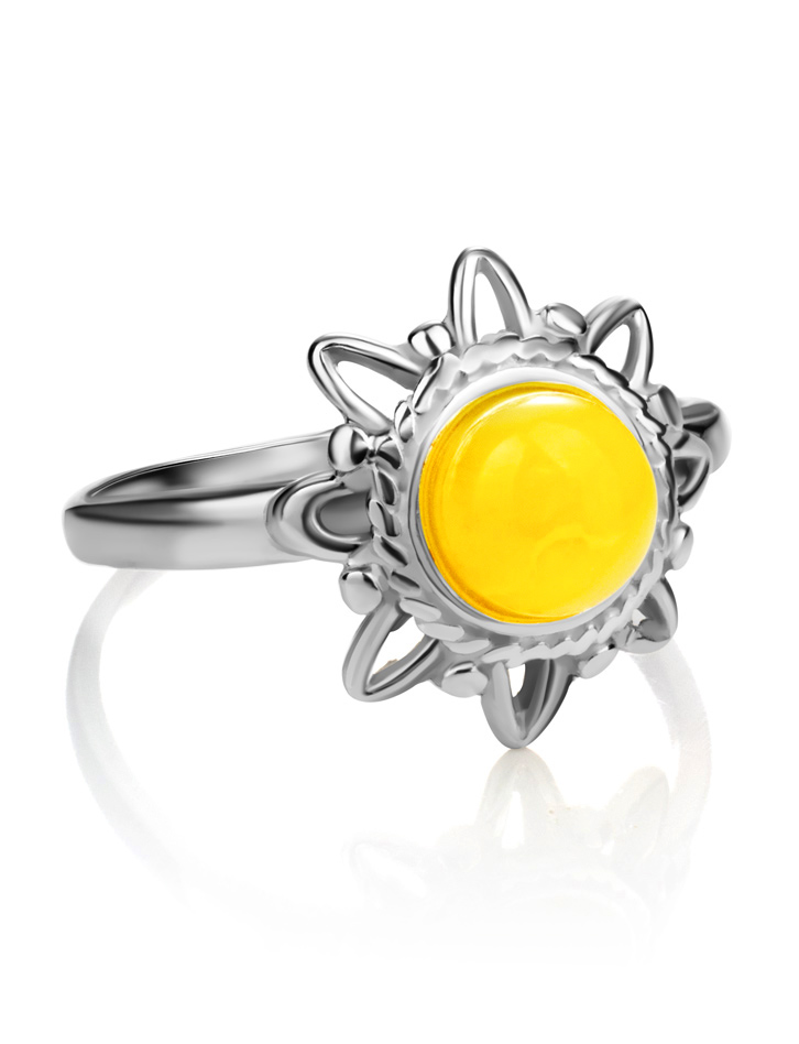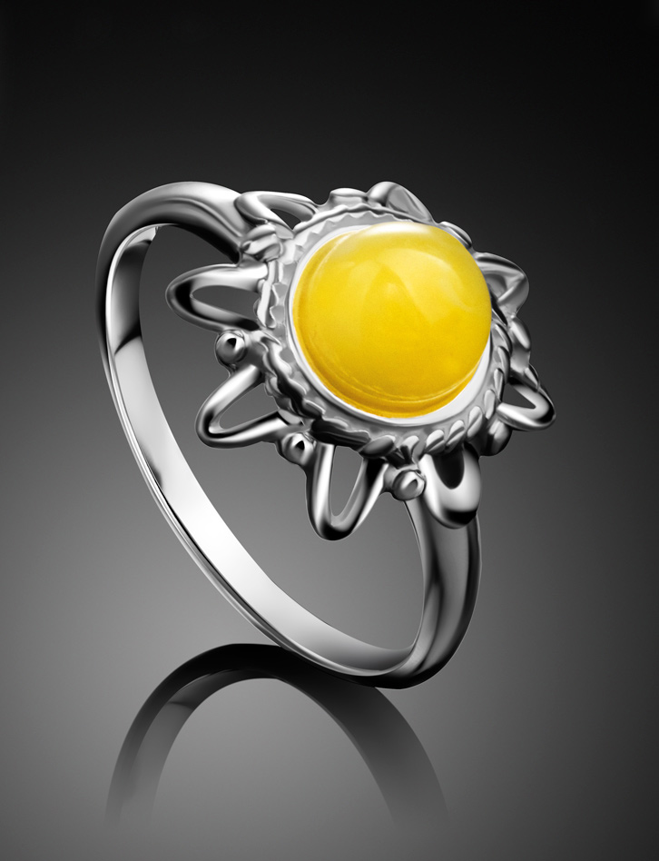 Нежное изящное кольцо с натуральным медовым янтарём «Гелиос»
