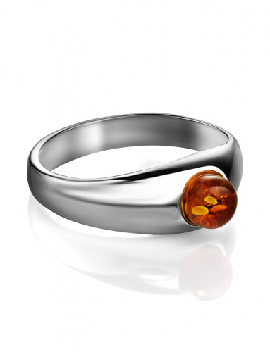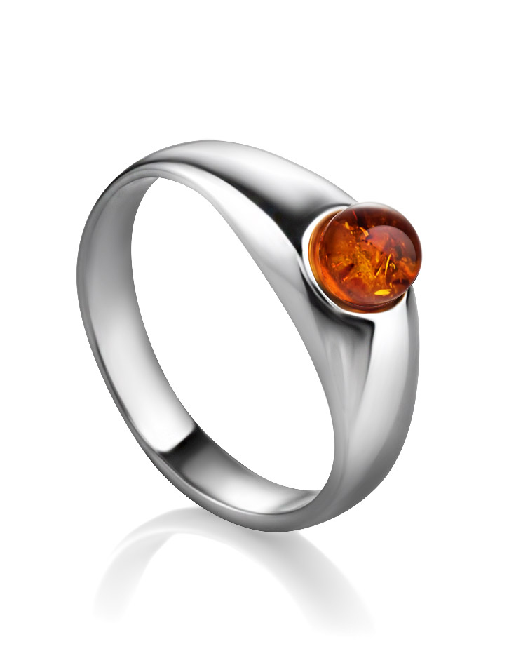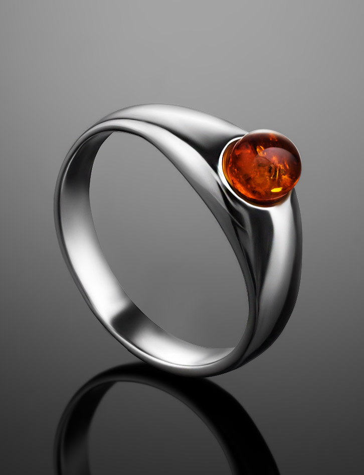Нежное кольцо из натурального янтаря коньячного цвета «Капри»