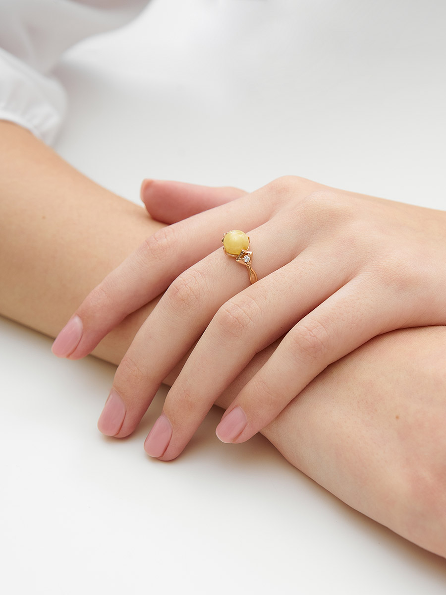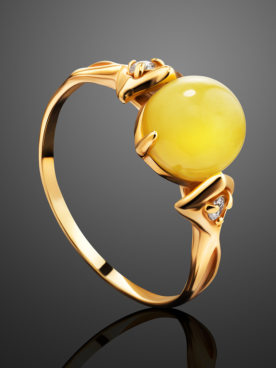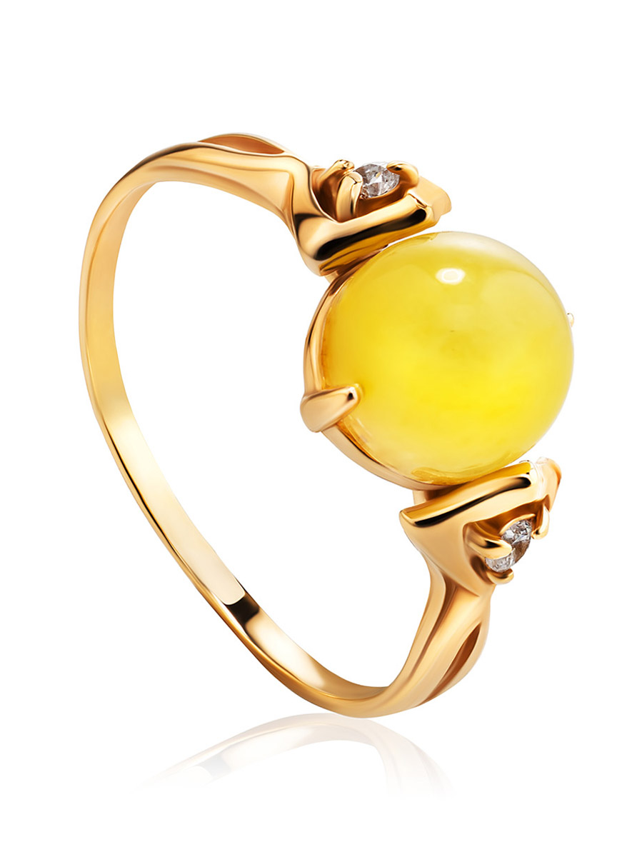 Нежное кольцо из позолоченного серебра с натуральным медовым янтарём «Самбия»