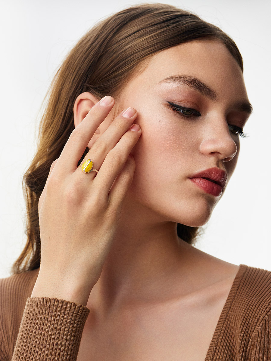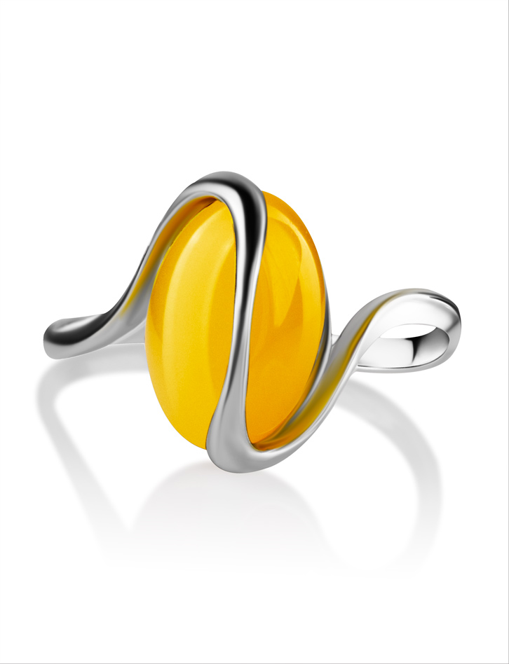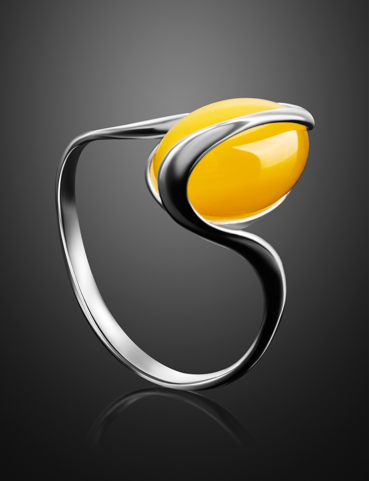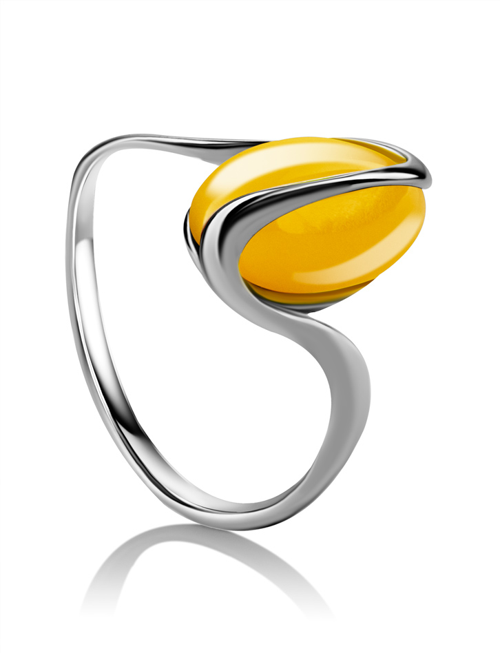 Нежное кольцо из янтаря ярко-медового цвета «Милан»