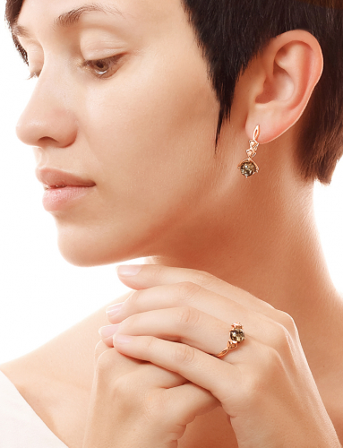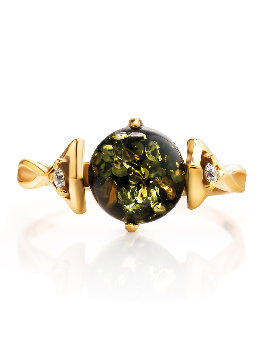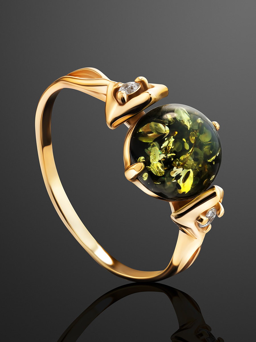 Нежное кольцо из золочённого серебра с янтарём зелёного цвета «Самбия»