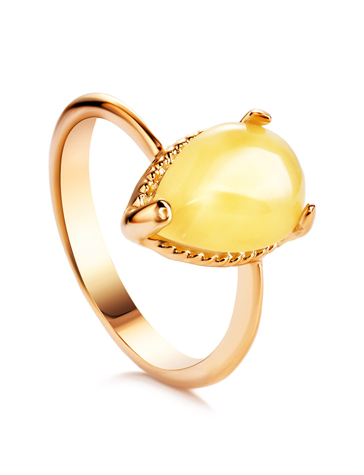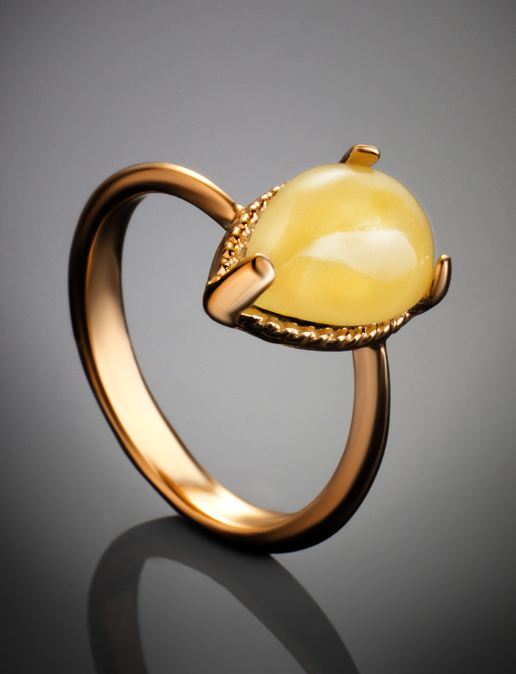 Нежное кольцо «Огонёк» из медового янтаря