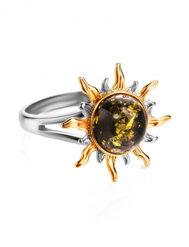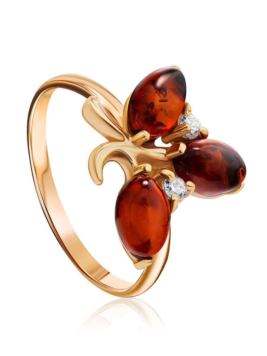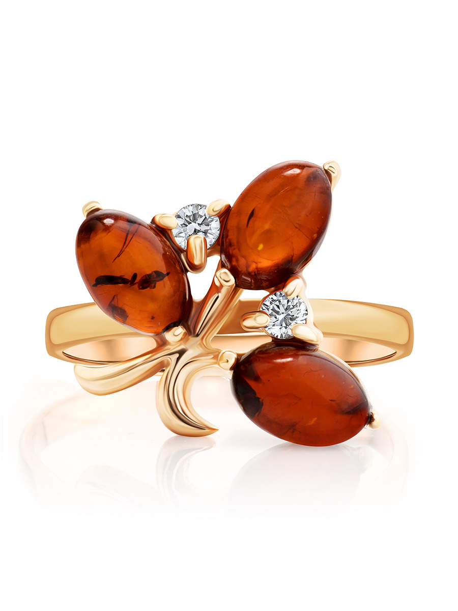 Нежное кольцо с натуральным янтарём коньячного цвета «Олеандр»