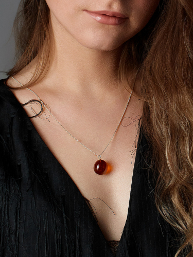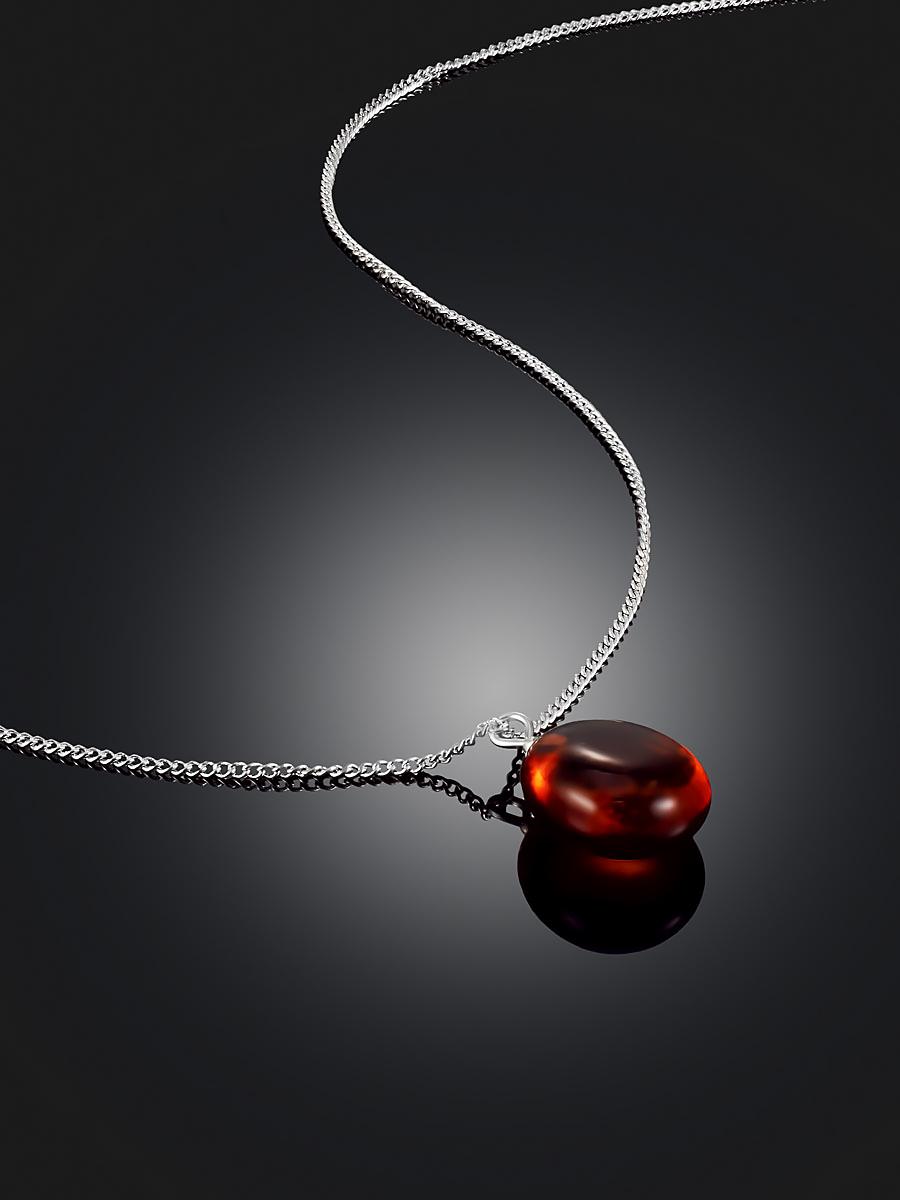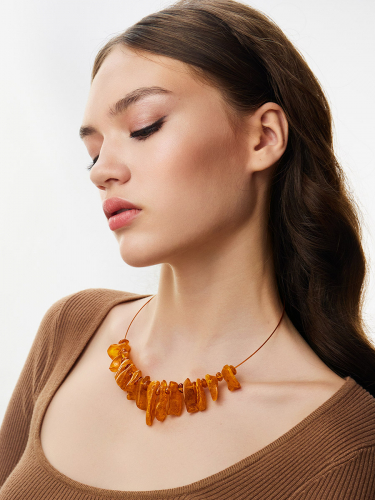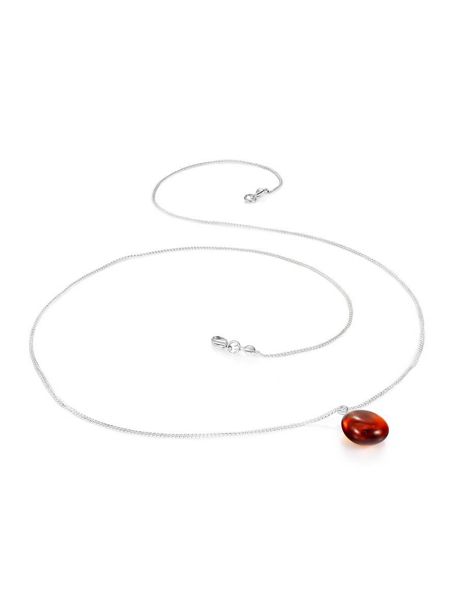 Нежное колье-цепочка с подвеской из коньячного янтаря «Росинка»