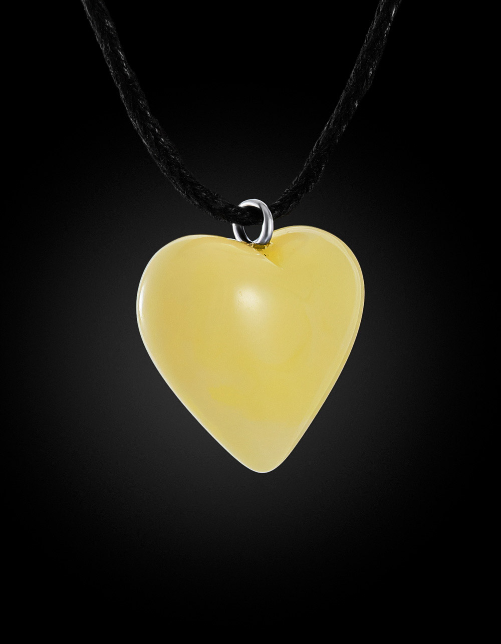 Нежное сердечко из натурального янтаря с пейзажной текстурой